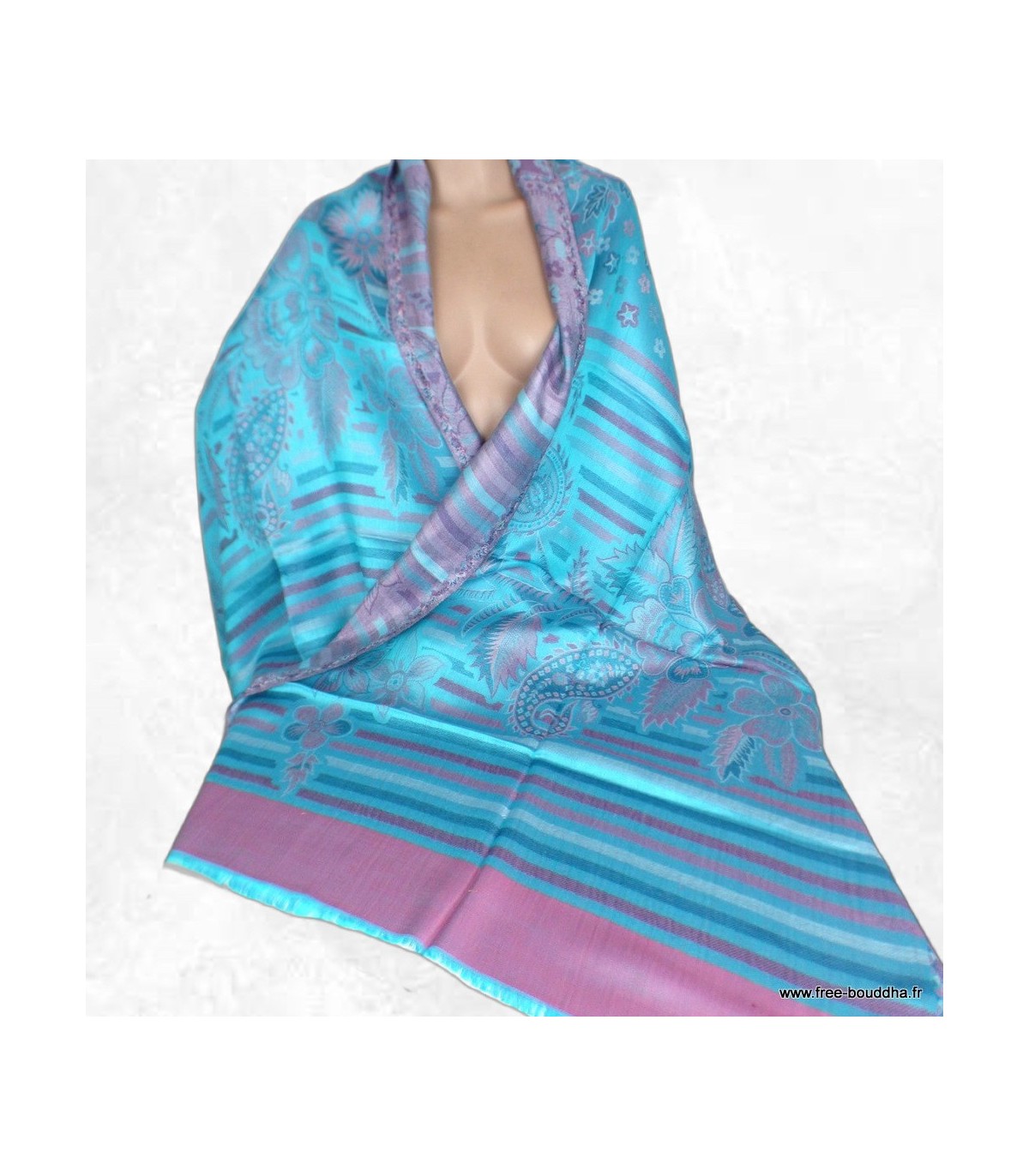 Châle en fibres naturelles de bambou turquoise rose – 190 x 70 cm
