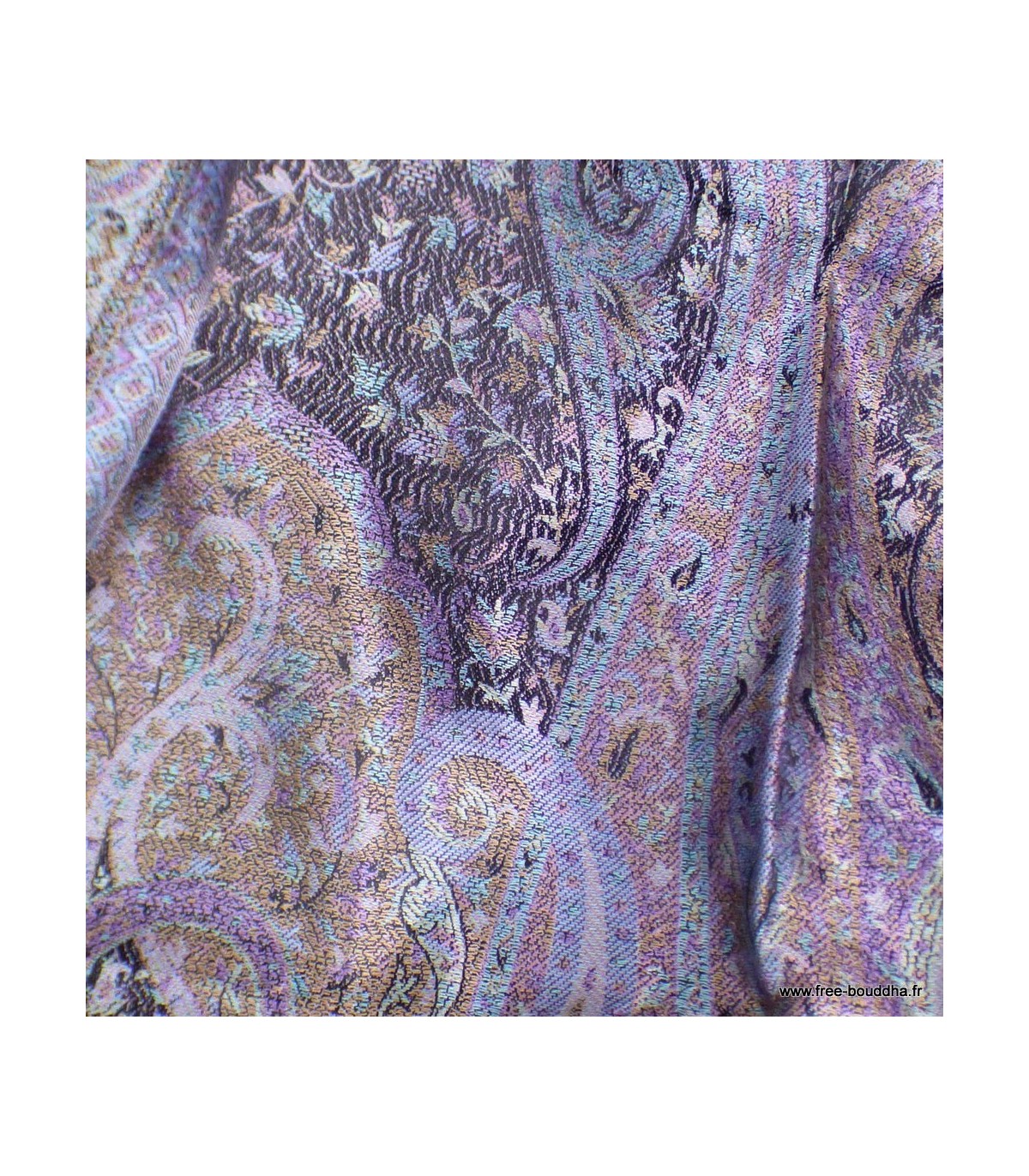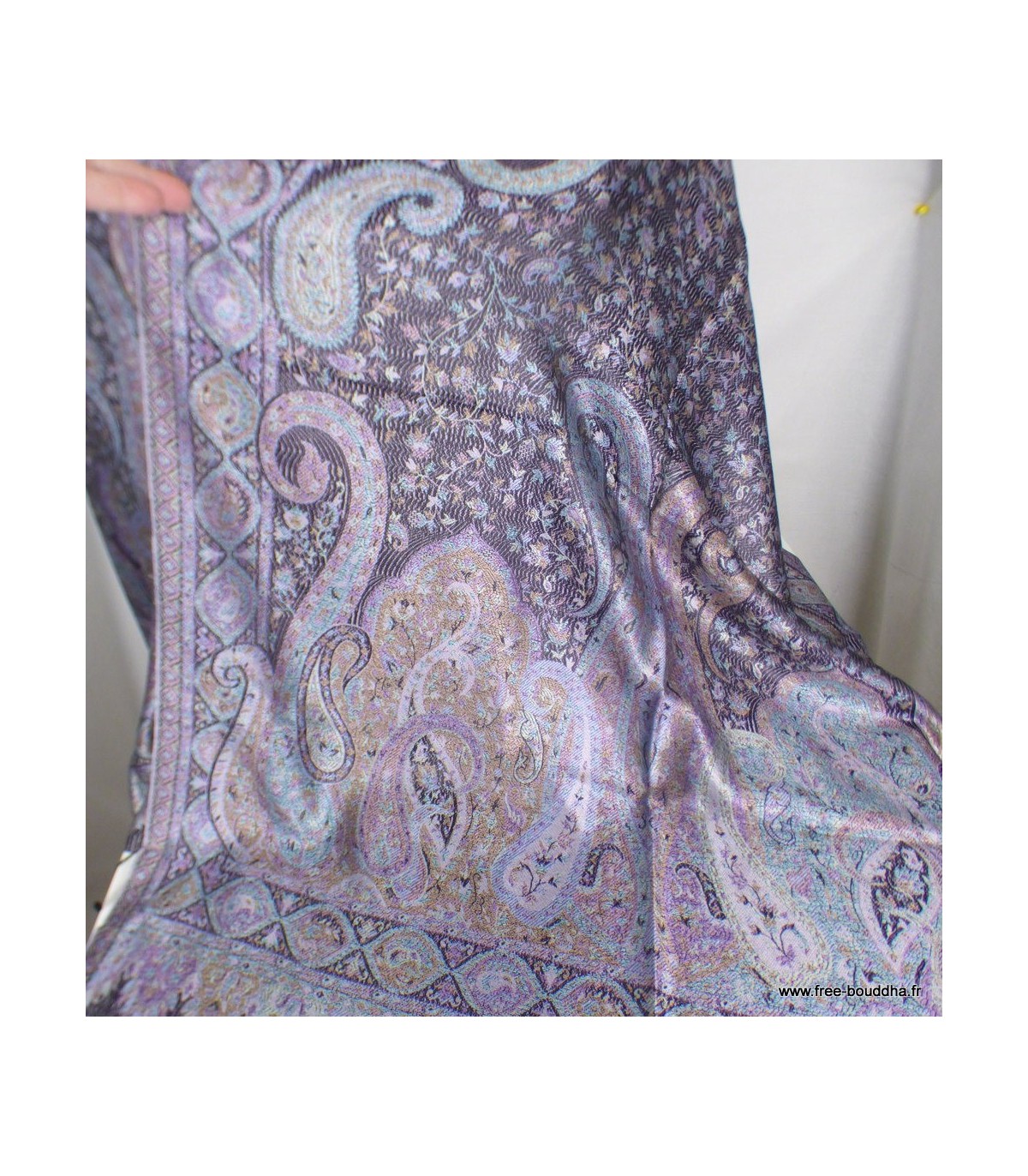 Ce châle pour femme en soie de mûrier incarne l’alliance subtile entre raffinement textile et confort haut de gamme. Sa teinte marron mauve, douce et nuancée, est sublimée par un tissage moiré aux reflets changeants, révélant des contrastes discrets et lumineux. Les motifs cachemire, aux accents cuivrés et dorés, apportent une touche d’élégance artisanale inspirée des traditions textiles. Légère, fluide et agréable à porter, cette étole accompagne aussi bien les tenues habillées que les moments du quotidien.