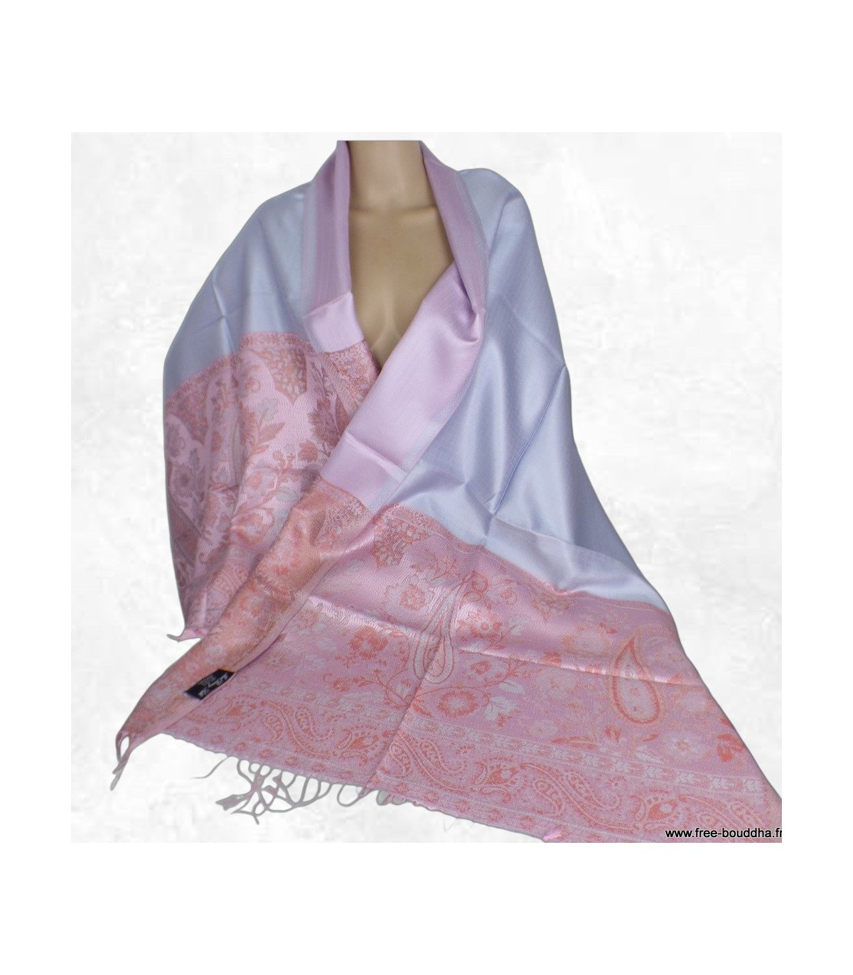 Châle réversible en soie de mûrier naturelle – Rose & Gris bleuté
