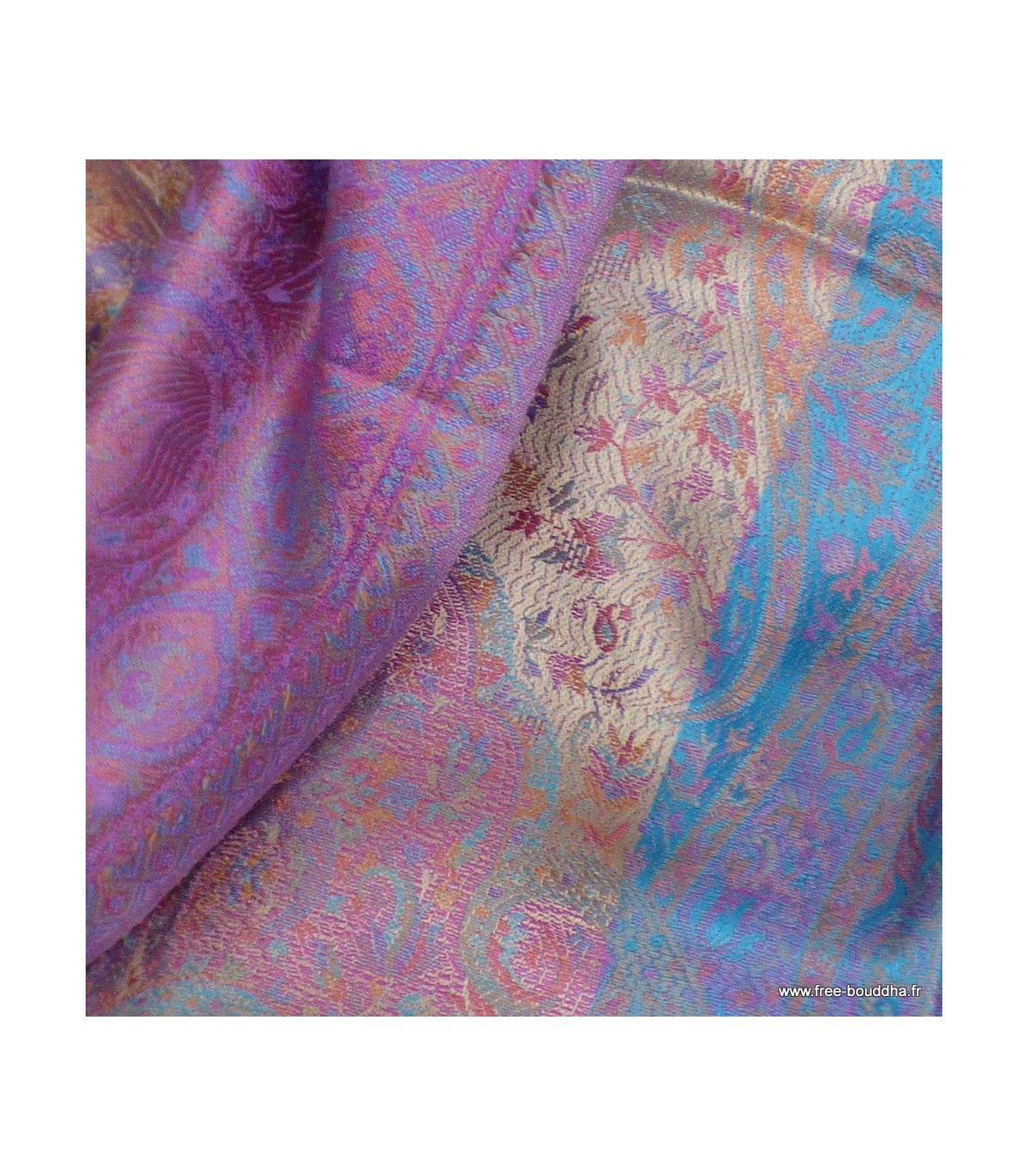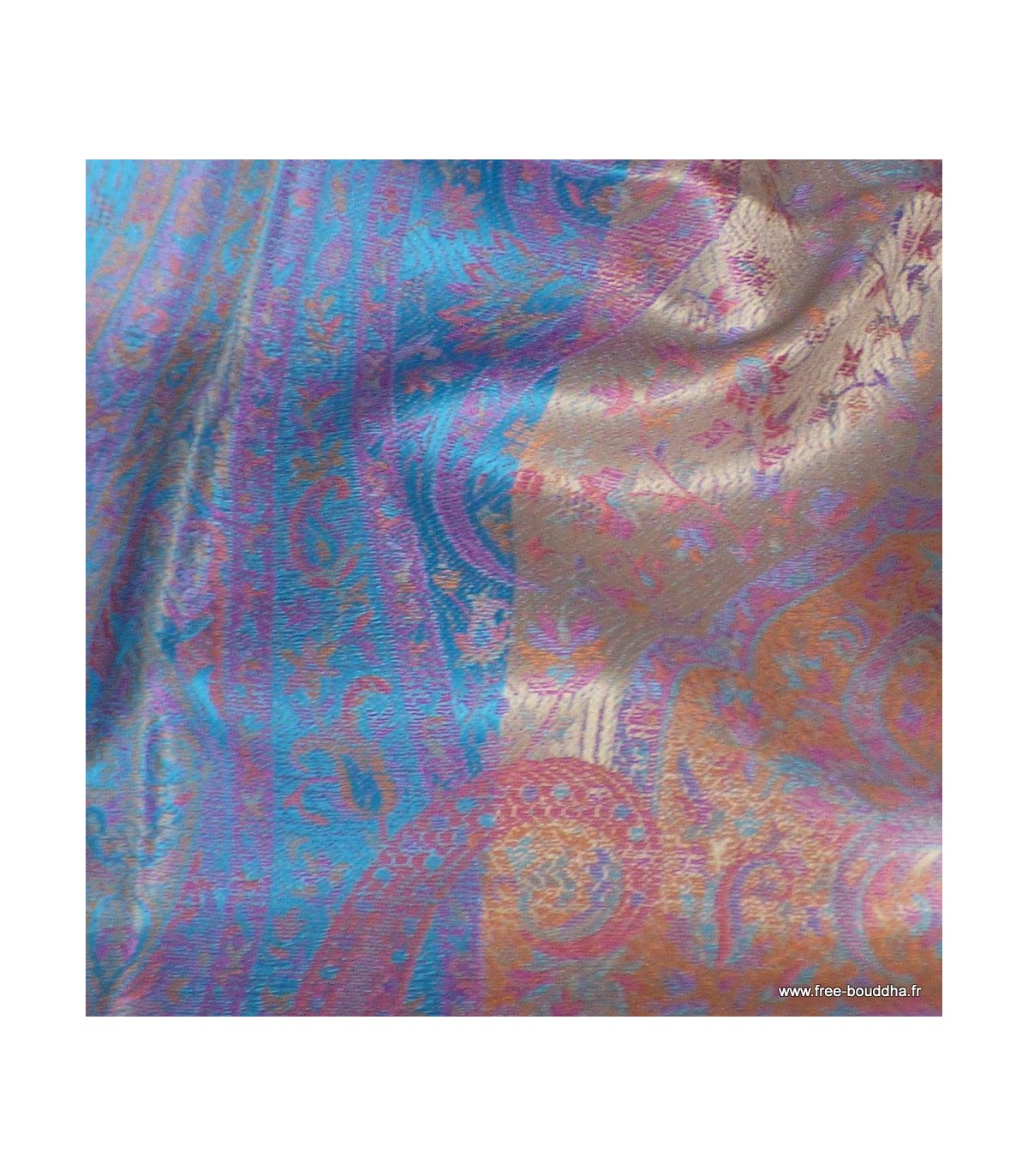 Les reflets métalliques visibles sur la photo sont dus à la brillance naturelle de la soie.