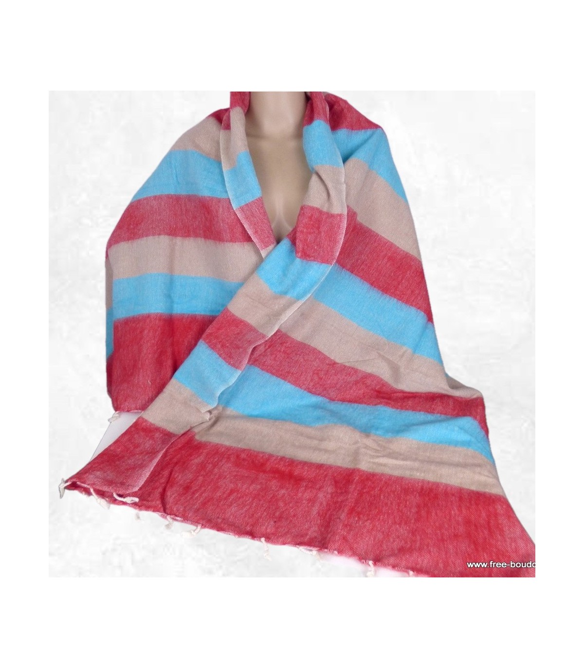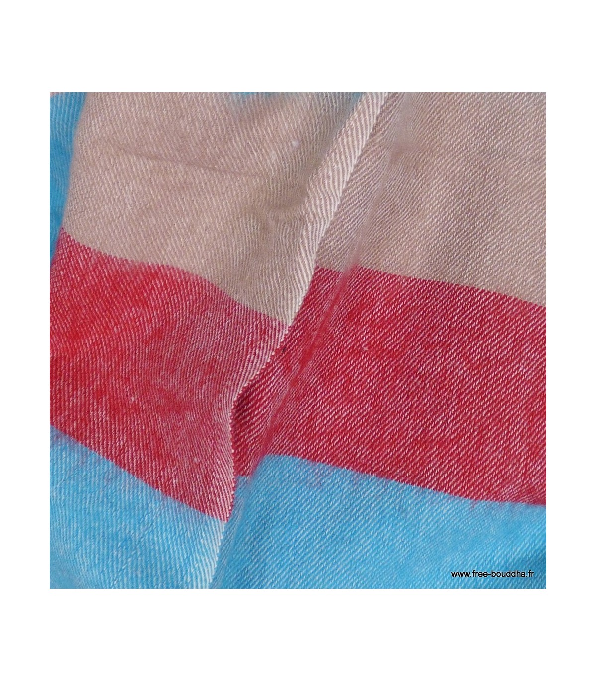 Châle laine de yack à rayures rouge bleu 80 x 180 cm