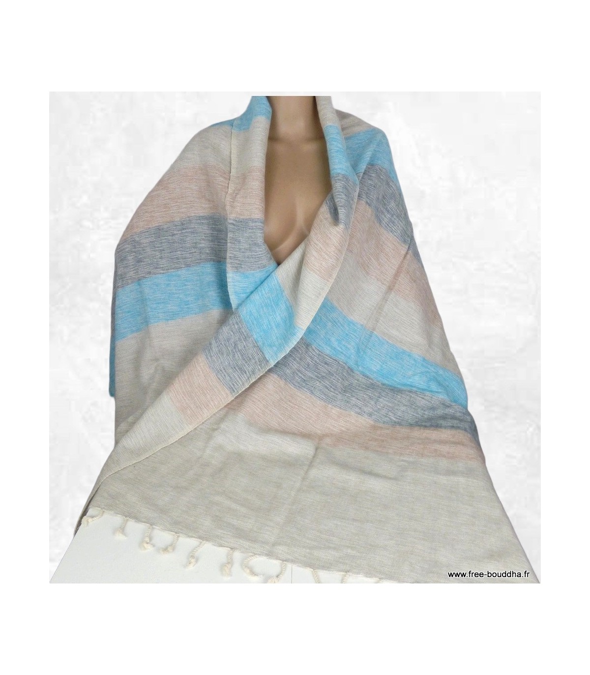 Châle laine de yack bleu écru taupe – Fabrication artisanale du Népal
