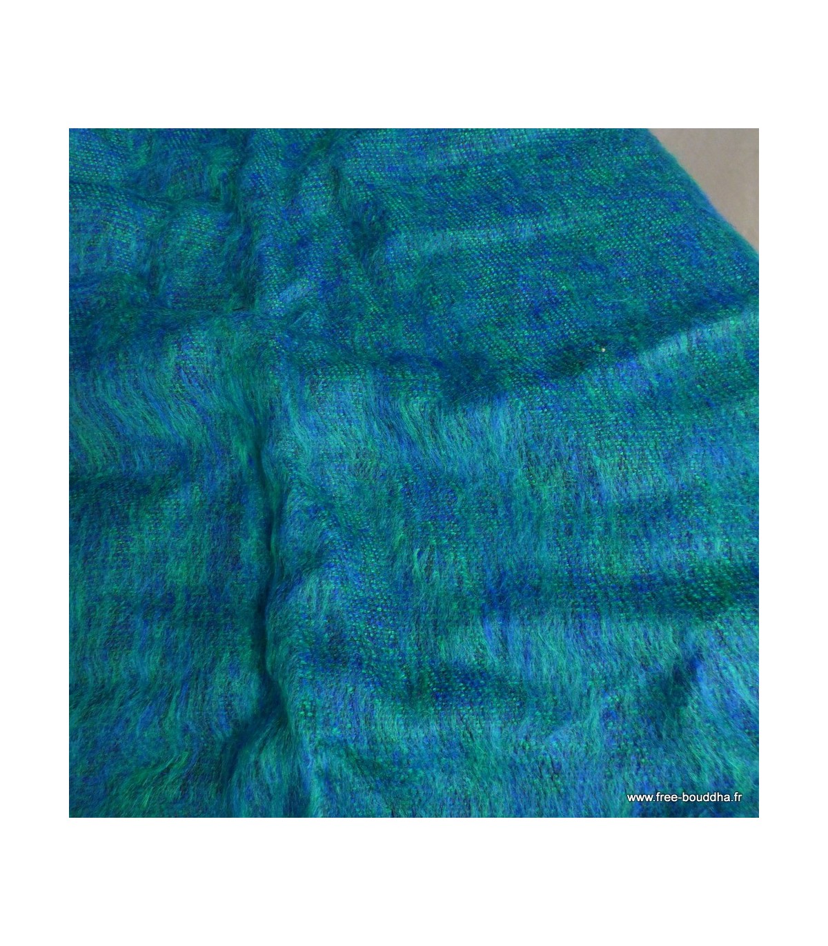 Châle laine de yack bleu et vert 80 x 180 cm – Fabrication artisanale du Népal