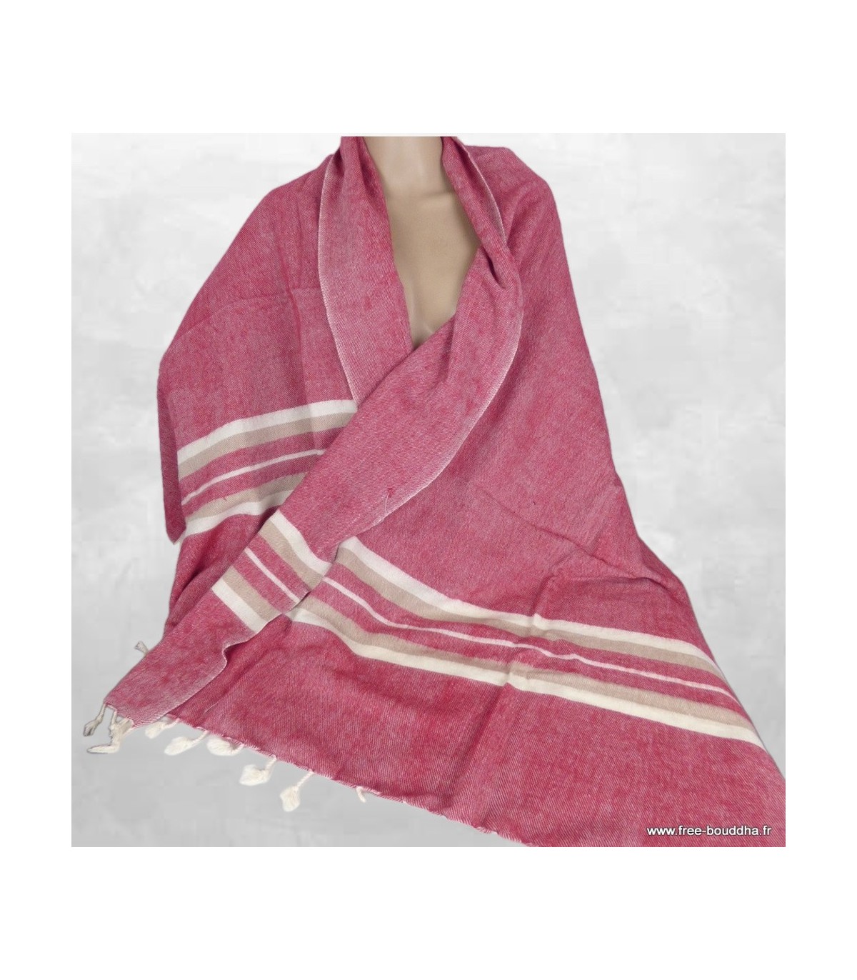 Châle laine de yack framboise écru 80 x 180 cm – Fabrication artisanale du Népal