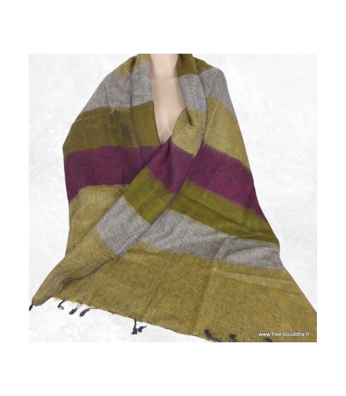 Châle laine de yack kaki prune taupe 80 x 180 cm – Fabrication artisanale du Népal