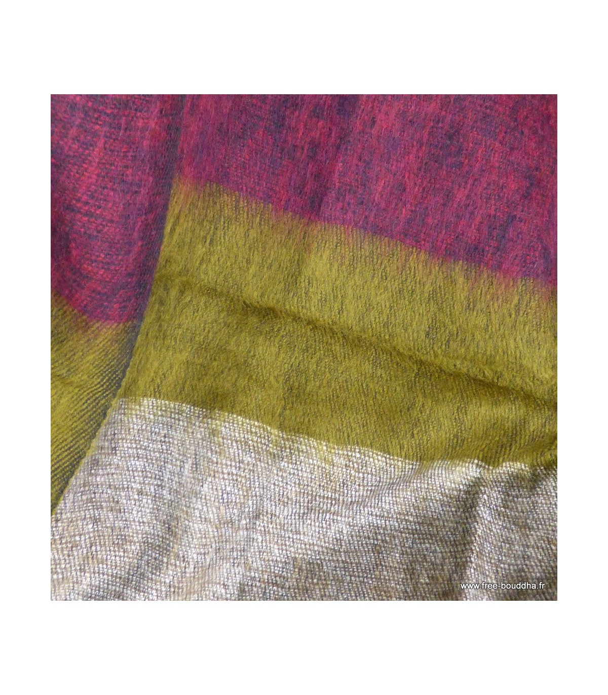 Châle laine de yack kaki prune taupe 80 x 180 cm