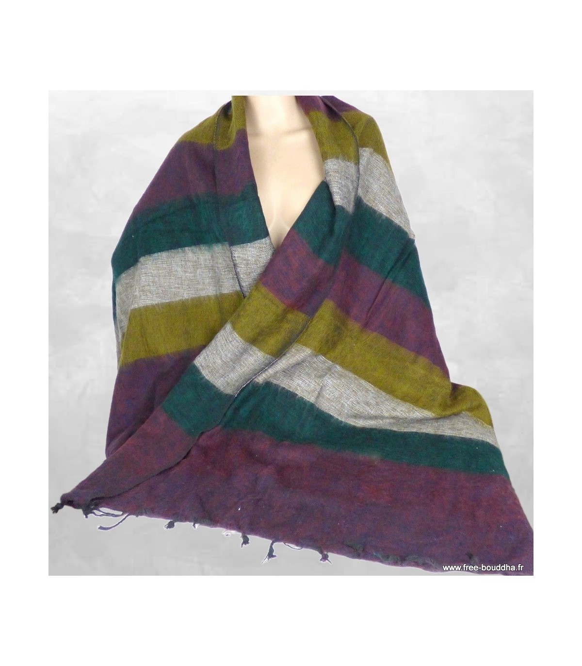 Châle laine de yack vert marron prune kaki 80 x 180 cm – Fabrication artisanale du Népal