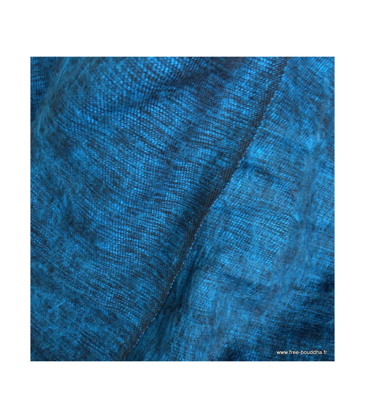 Châle en laine de yack bleu sarcelles chiné noir – Fabrication artisanale du Népal