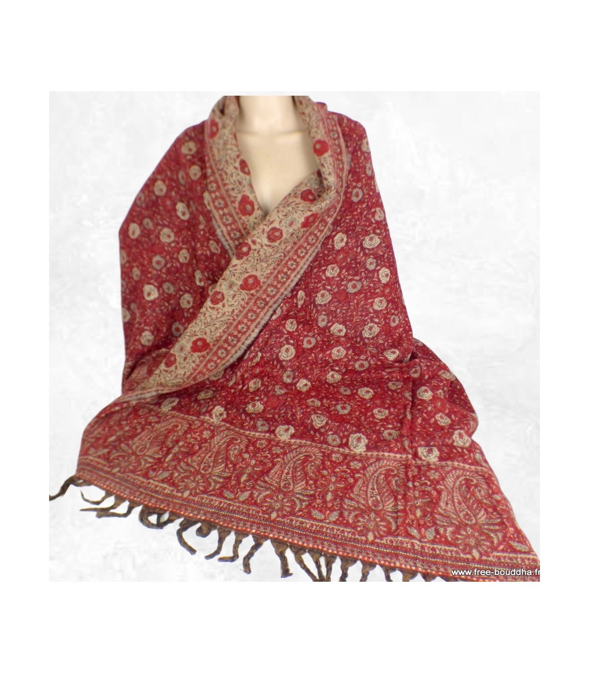 - Couleur : bordeaux, motifs cachemire variables