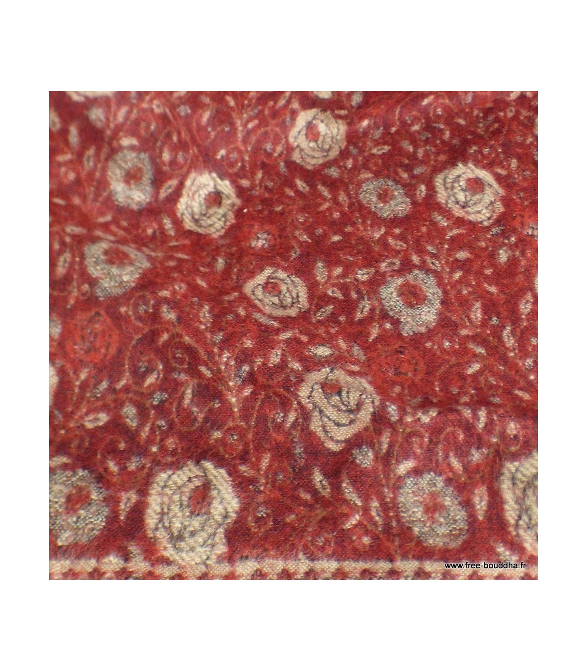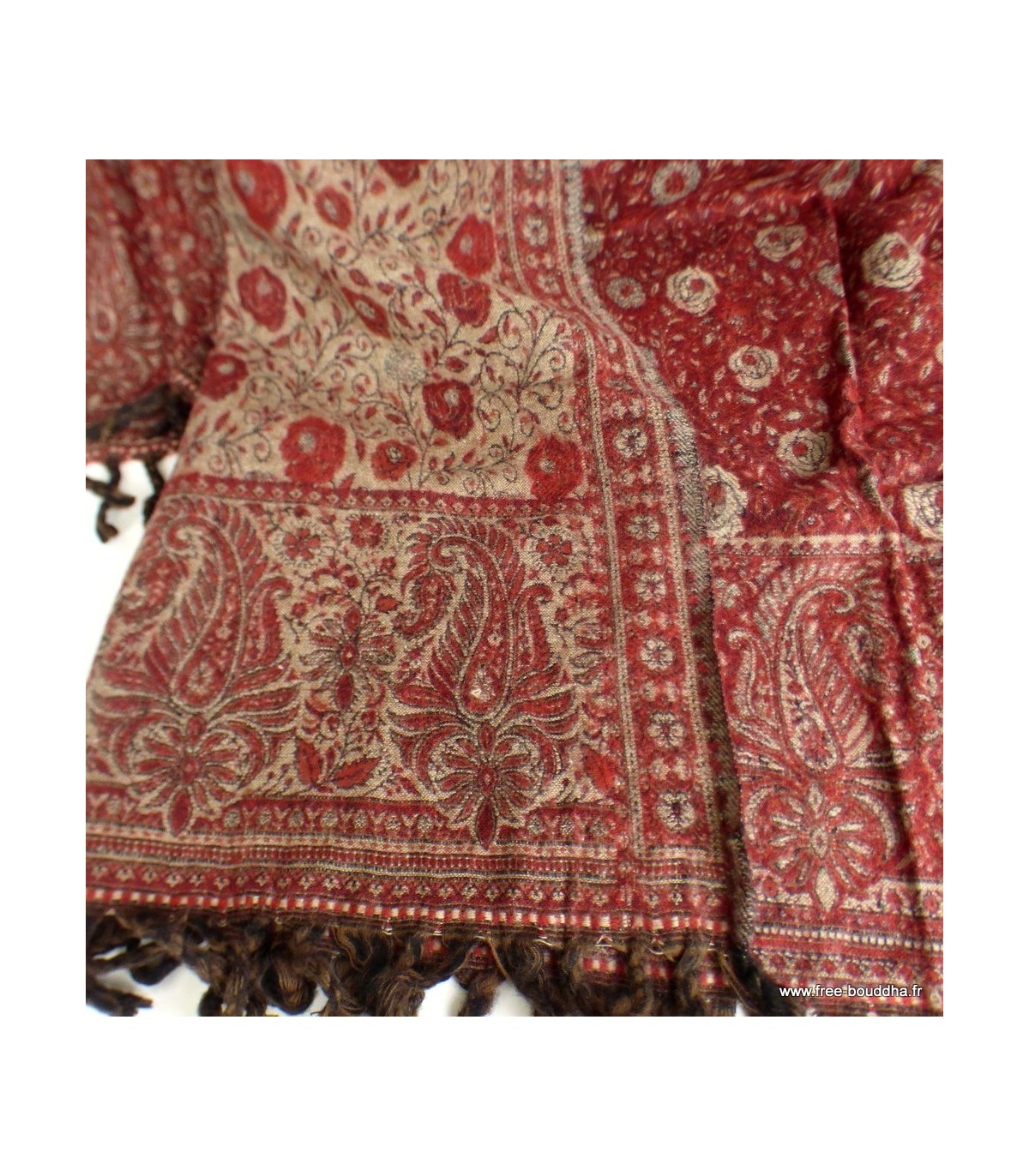 Châle népalais bordeau rouille motifs fleur 100 x 200 cm