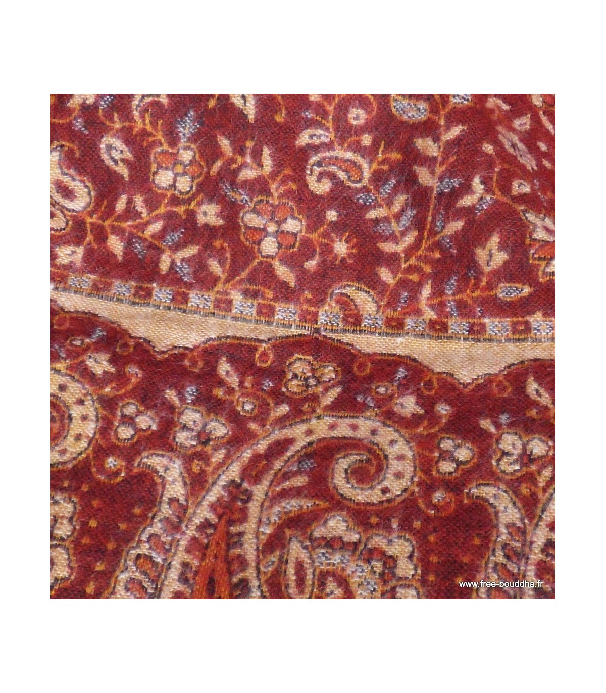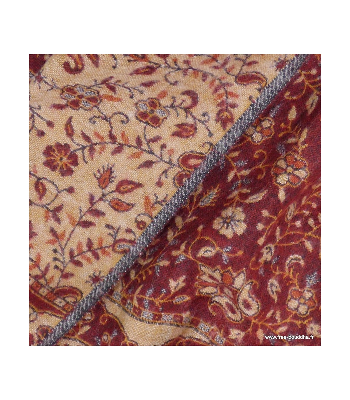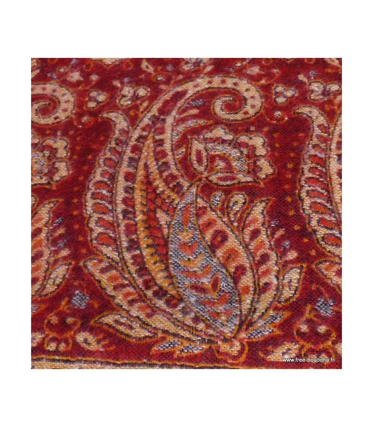 Châle népalais de méditation bordeau rouille motifs fleur 100 x 200 cm