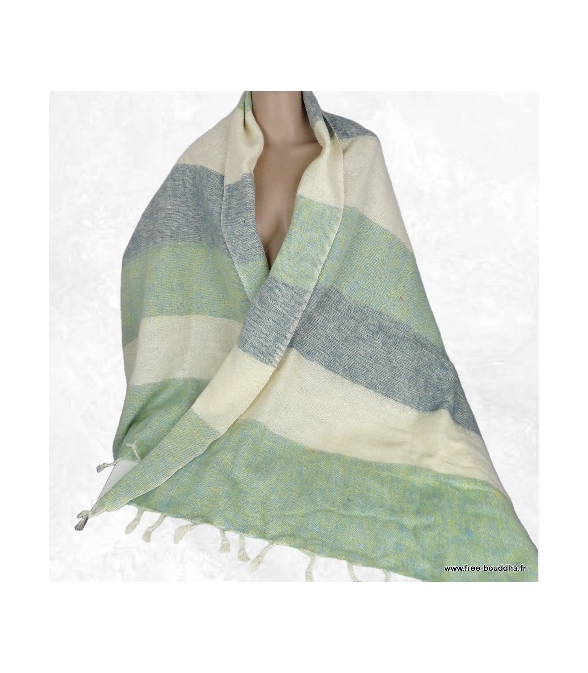 Châle népalais laine de yack vert tendre, gris et écru