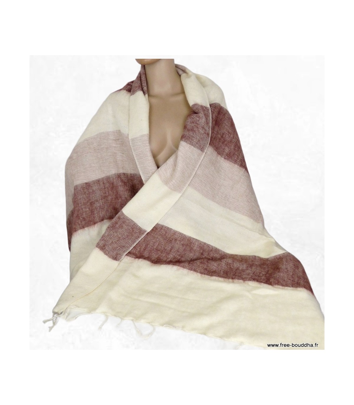 Châle nepalais rayures bordeau écru