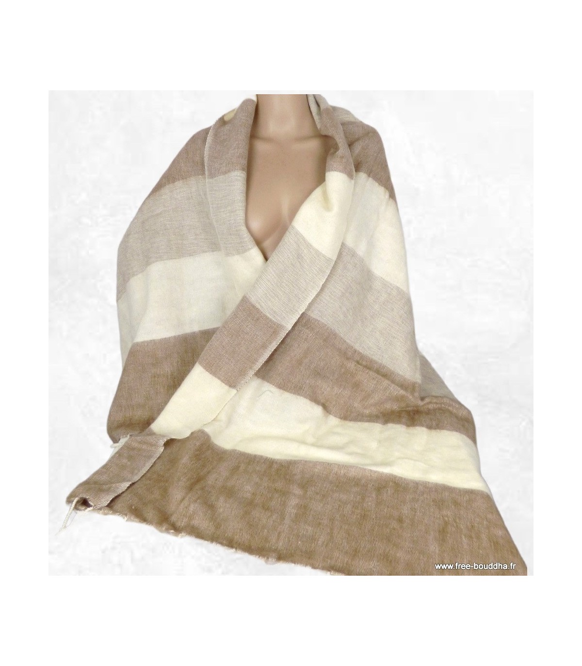Châle nepalais rayures marron et beige
