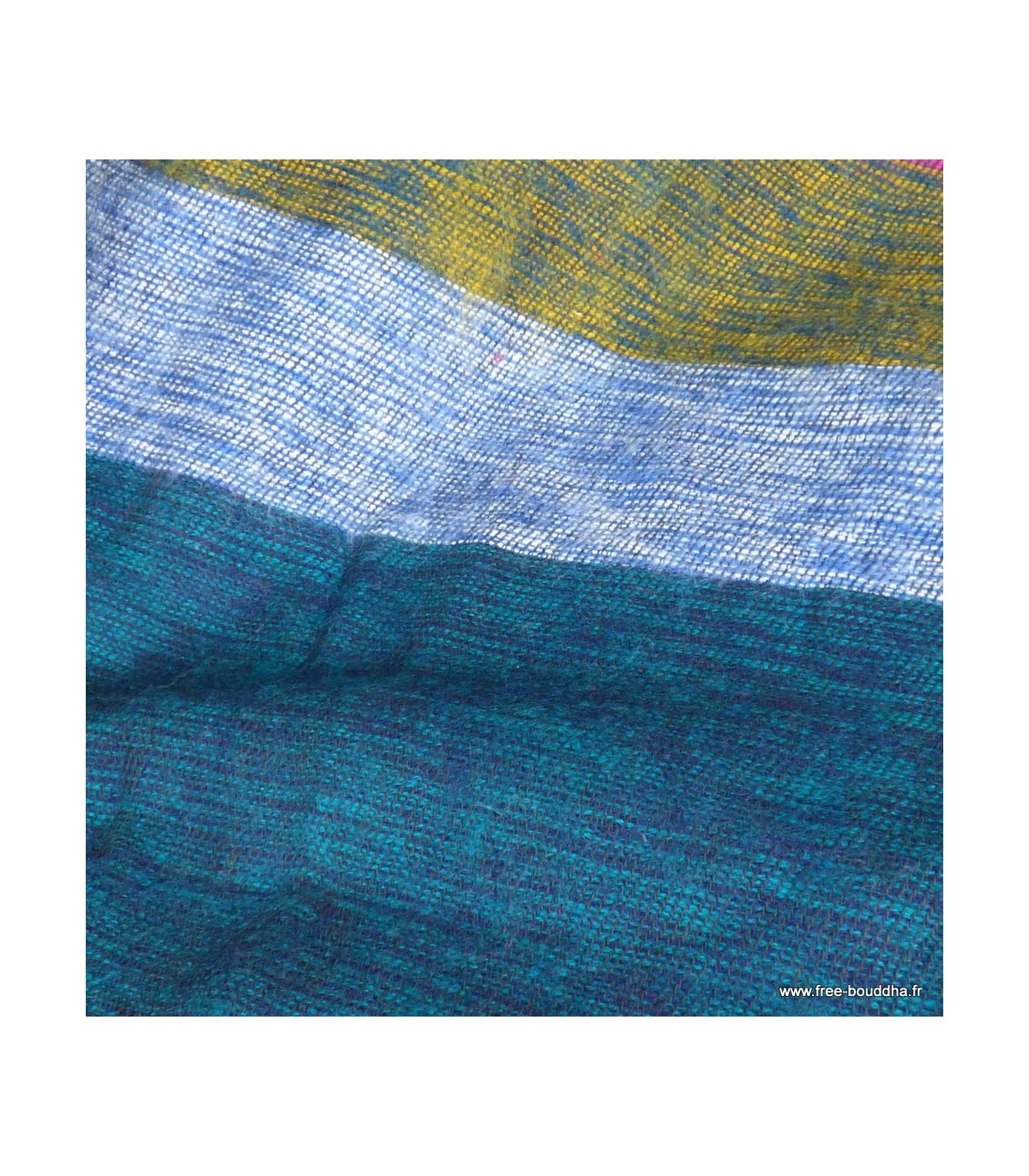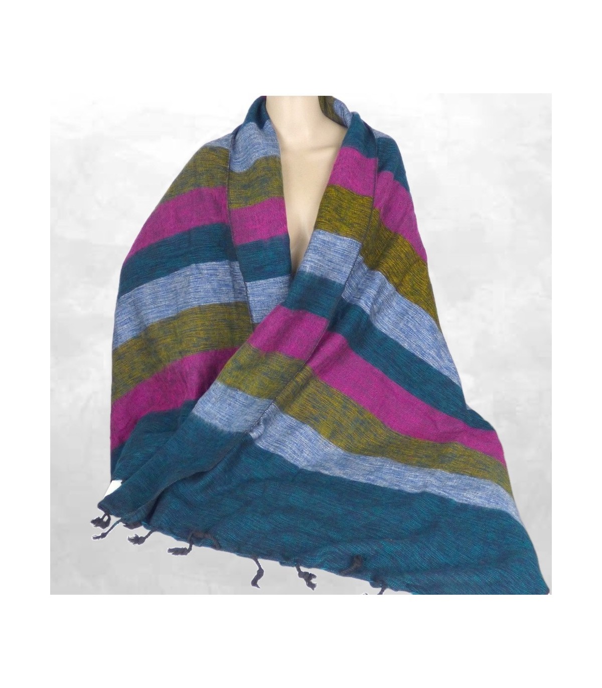 Châle laine de yack rayures vertes rose kaki et bleu 80 x 180 cm – Fabrication artisanale du Népal
