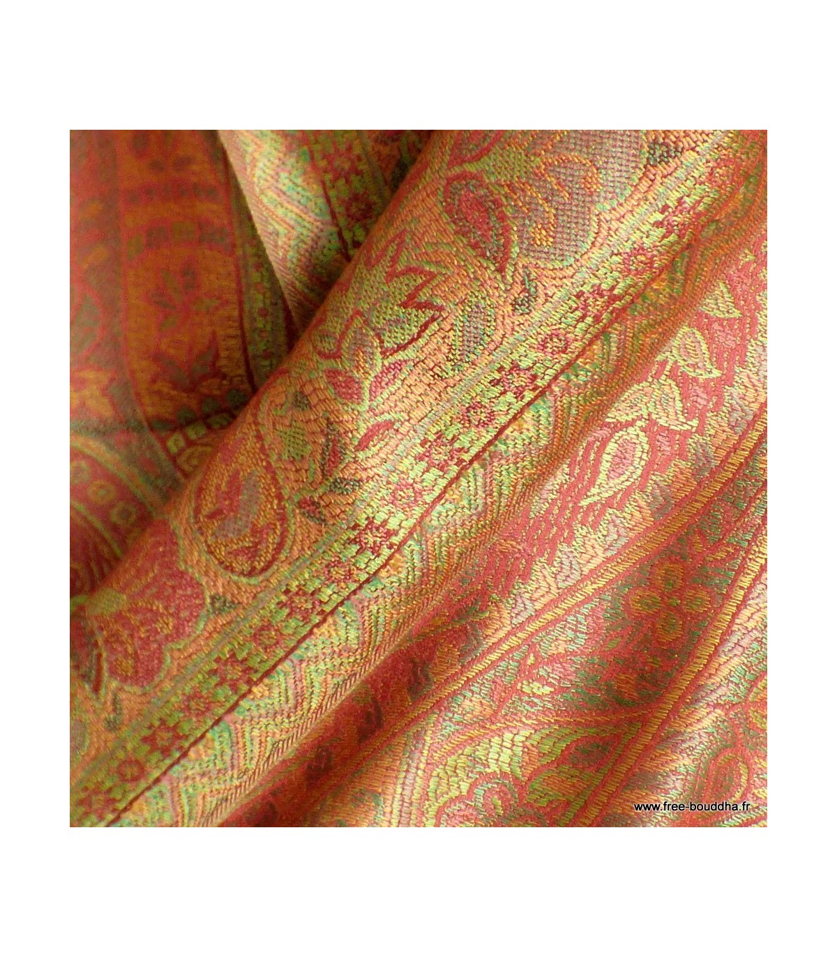 Châle en soie naturelle rouge or – Reflets anis et vert doré