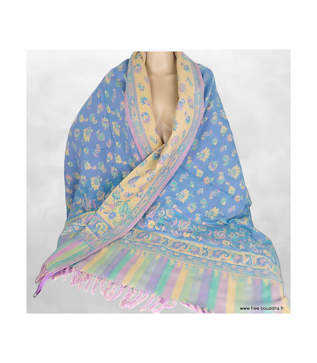 Ce modèle de la collection Tibetan se distingue par ses couleurs pastel jaune, vert et lilas, une harmonie douce et lumineuse qui évoque les teintes délicates des paysages népalais au lever du jour. Une palette apaisante, facile à porter, qui apporte une touche subtile et élégante à chaque tenue.