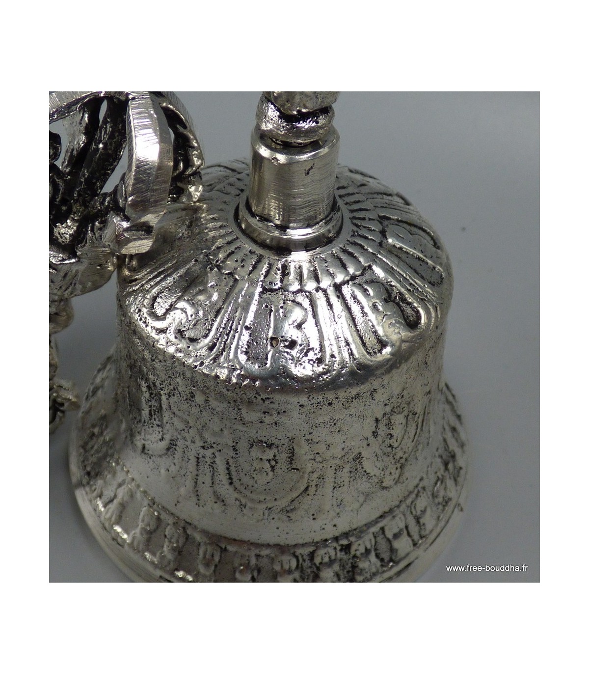 Cloche rituelle tibétaine en bronze plaqué argent – 15 cm