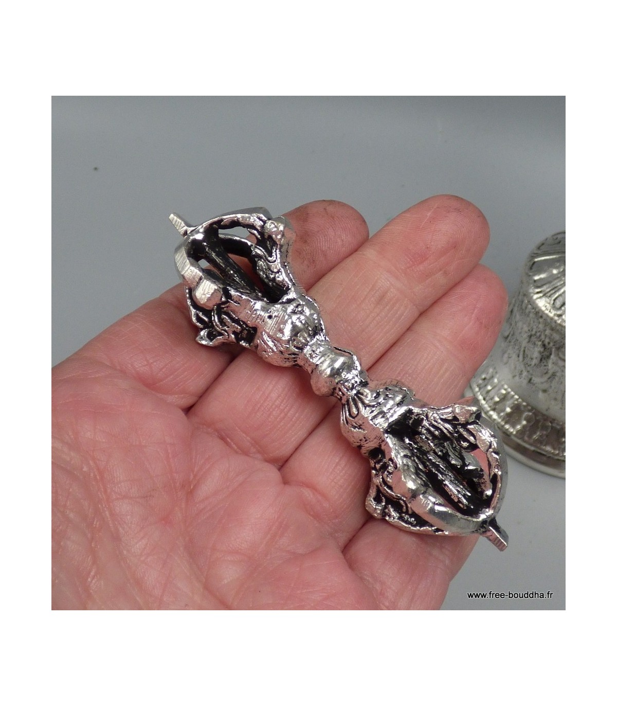 Cloche tibétaine et dorjé plaqué argent 15 cm