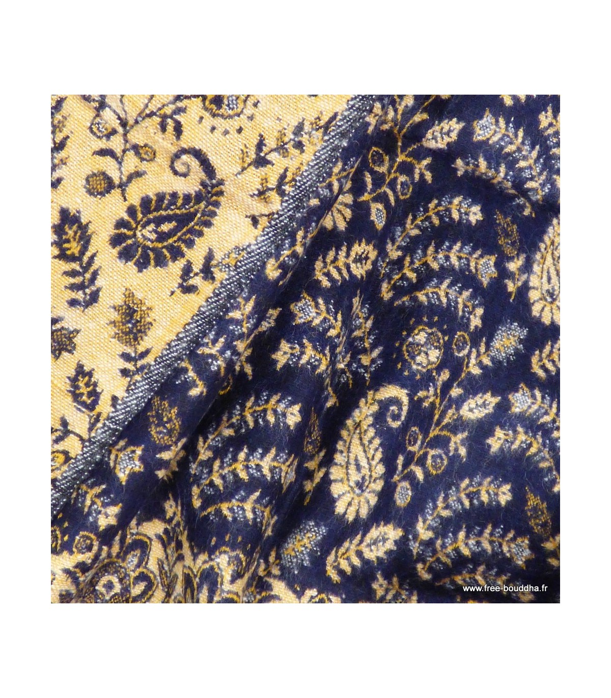 Couverture de méditation népalaise bleu nuit beige 90 x 200 cm – Artisanat du Népal