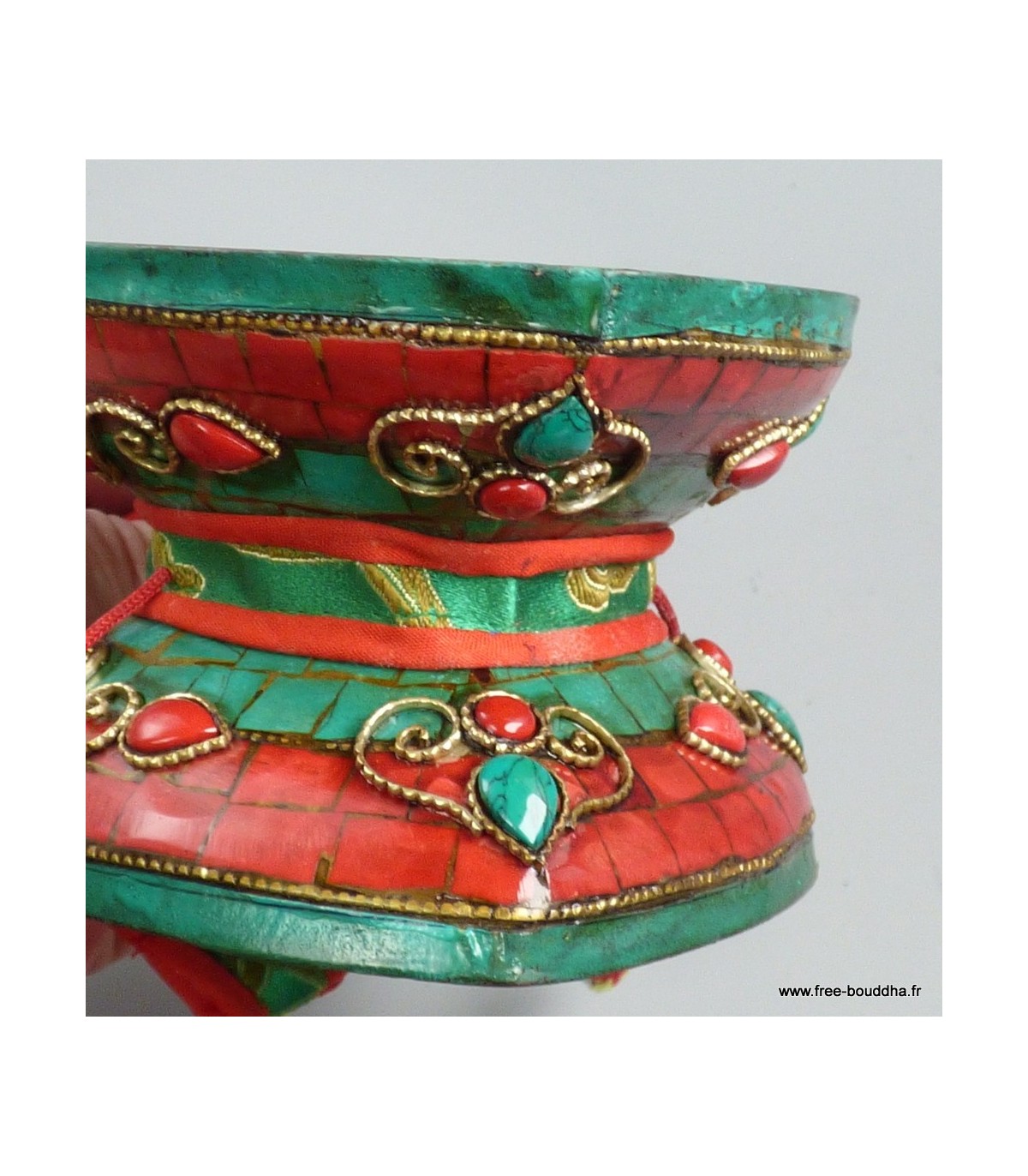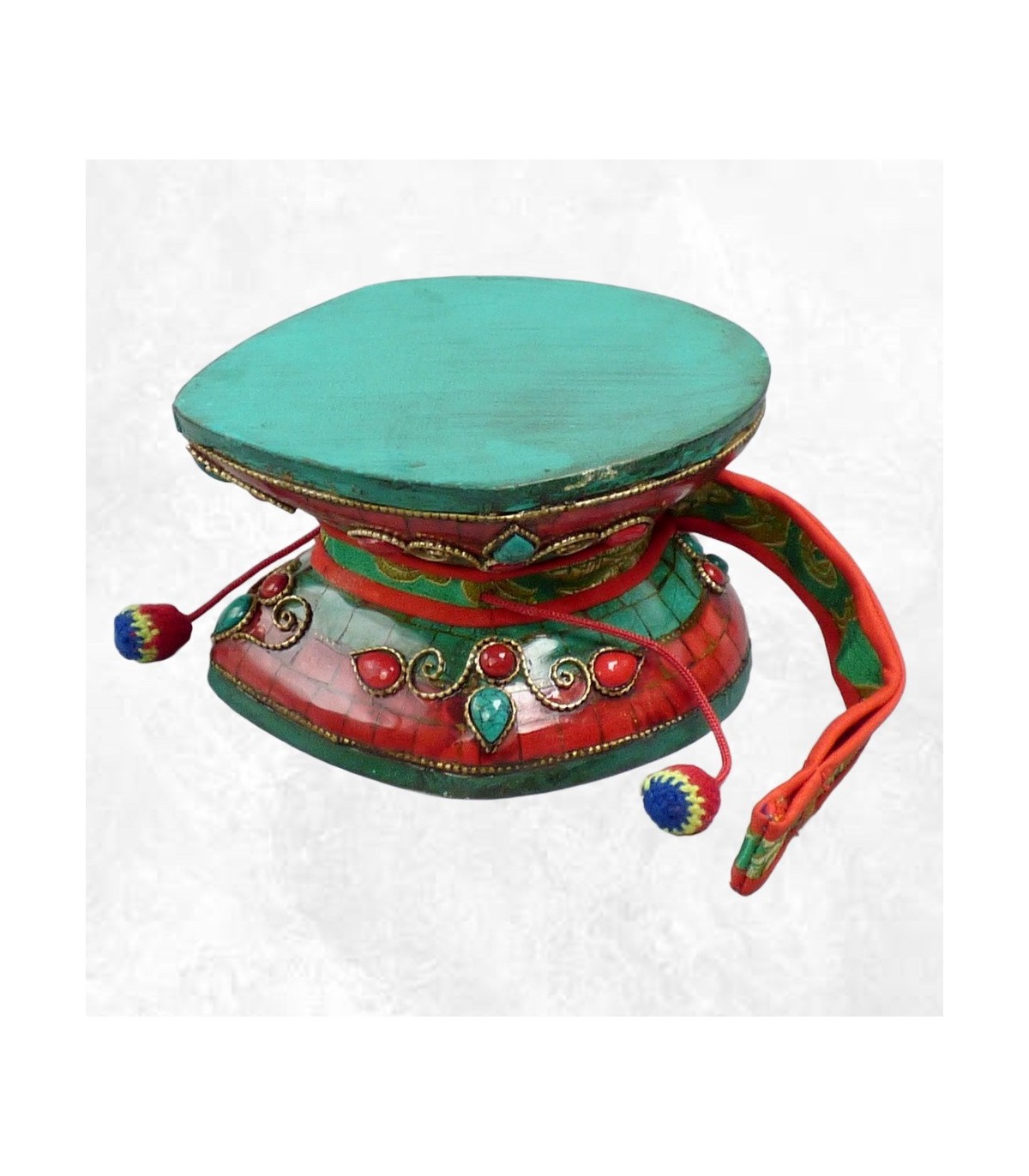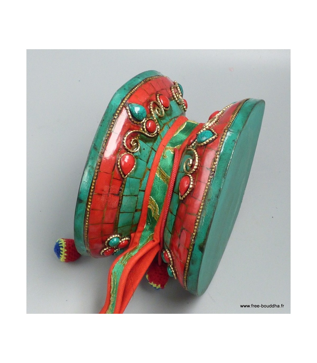 Damaru tibétain authentique 11,5 cm pierres naturelles