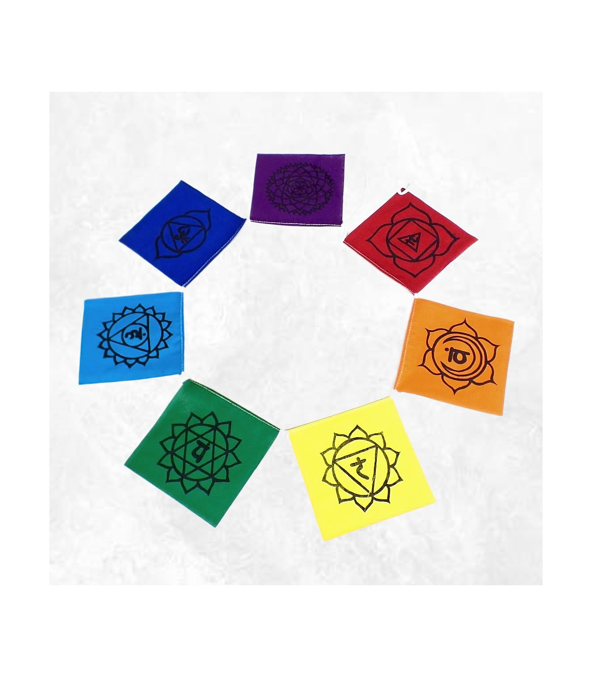- 7 drapeaux en coton, chacun dédié à un chakra