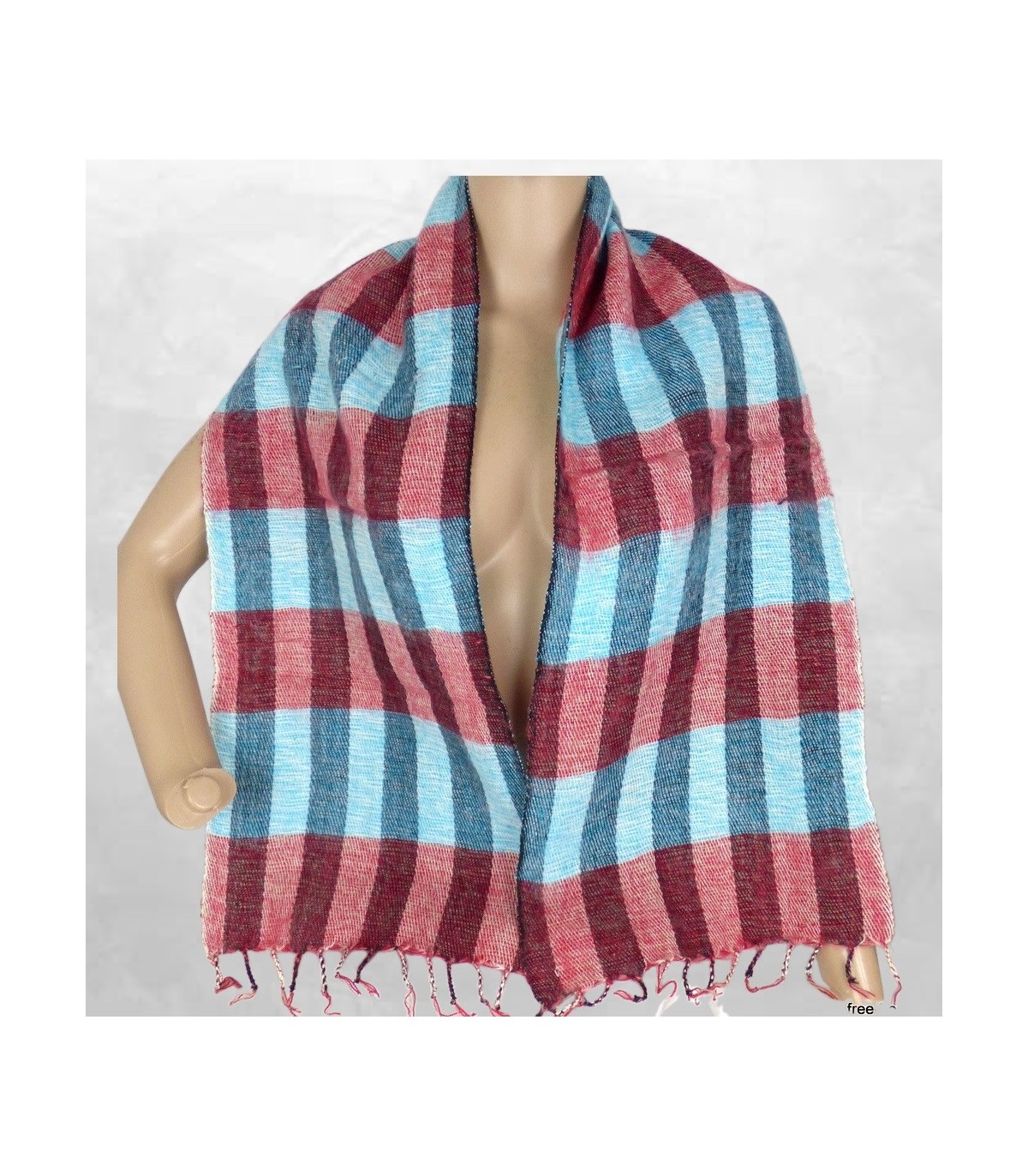 Echarpe artisanale en laine yak chaude bleu et rouge