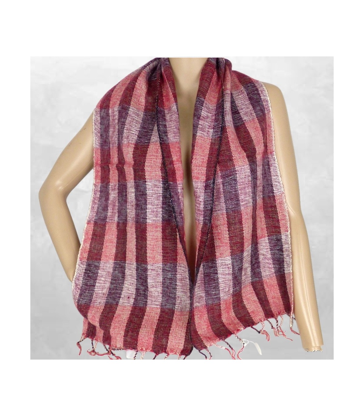 Écharpe en laine de yak style écossais rouge et bordeaux – 140 × 30 cm – Fabriquée au Népal