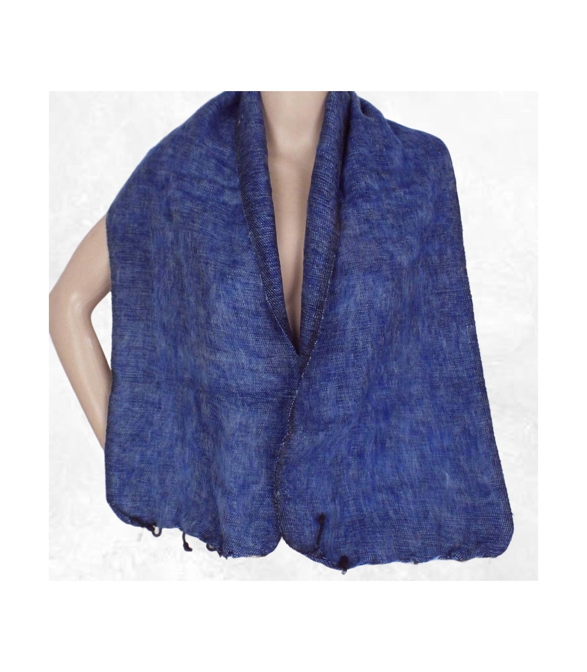 Écharpe homme femme bleu jeans en laine de yak – Fabrication artisanale du Népal