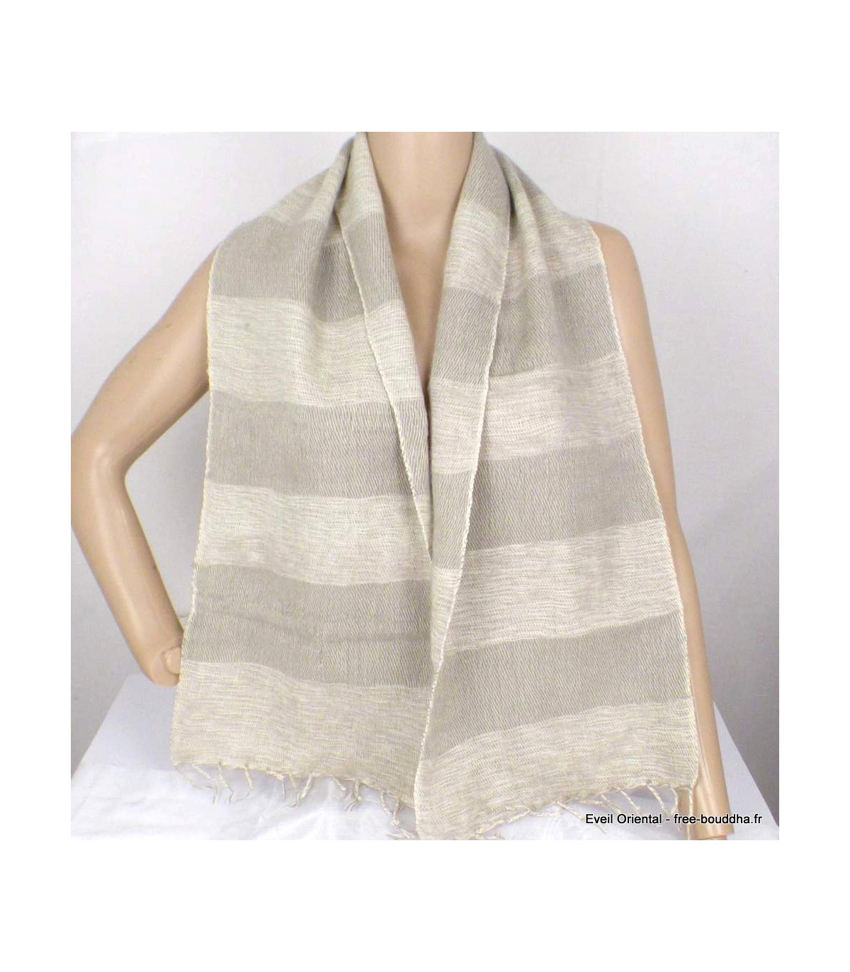 Echarpe homme femme laine de yak beige écru fait au Népal