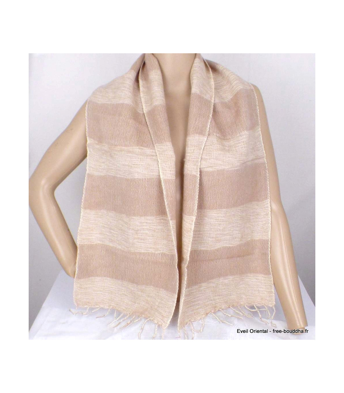 Echarpe homme femme laine de yak beige rosé fait au Népal