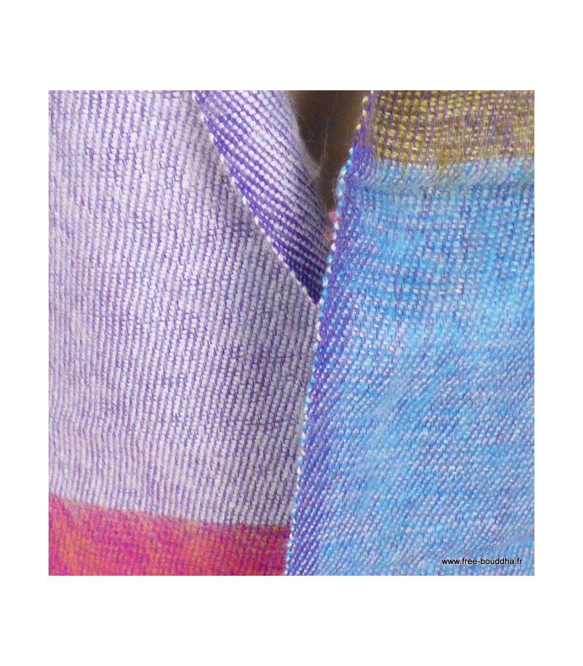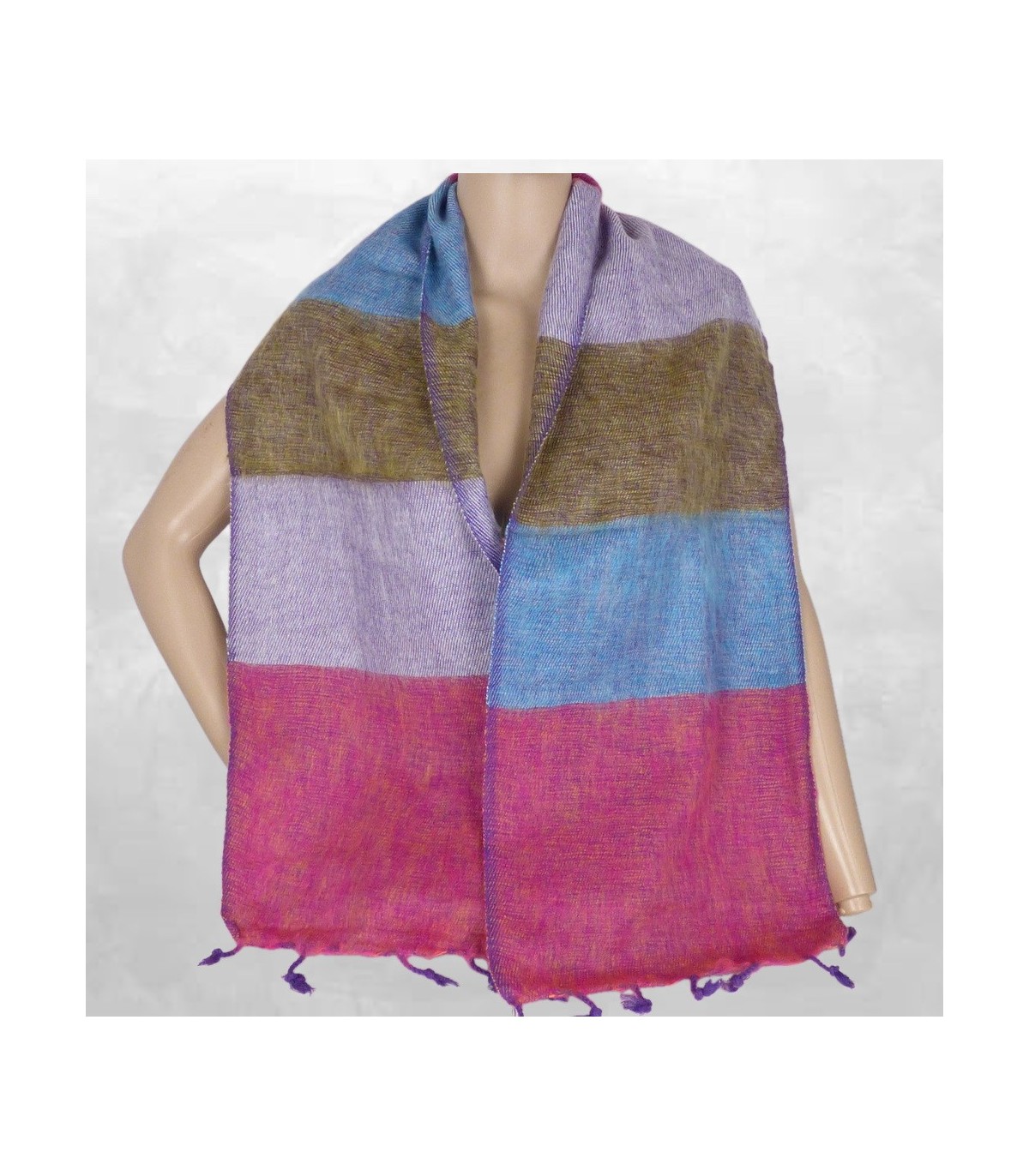 Écharpe laine de yack multicolore bleu rose – Tissage népalais traditionnel