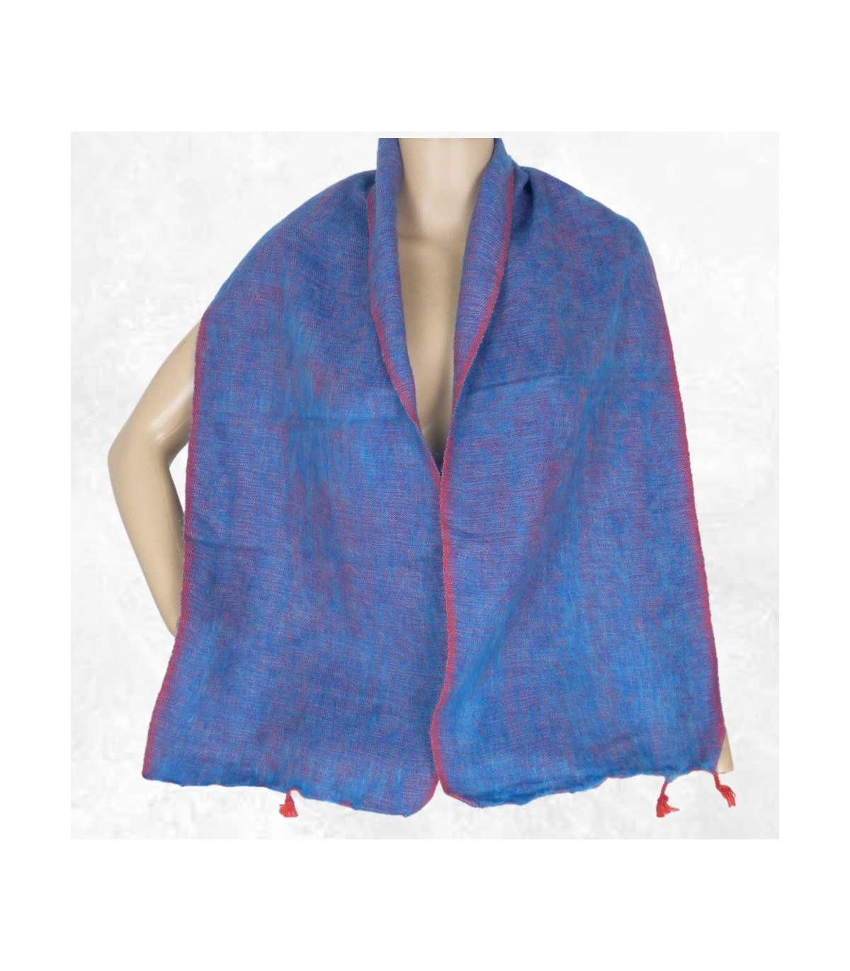 Echarpe laine de yak bleue bordure rouge, Népal