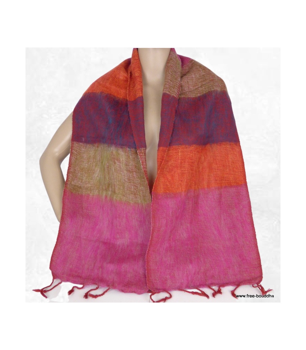 Echarpe orange fuschia yak wool 140 x 30 cm