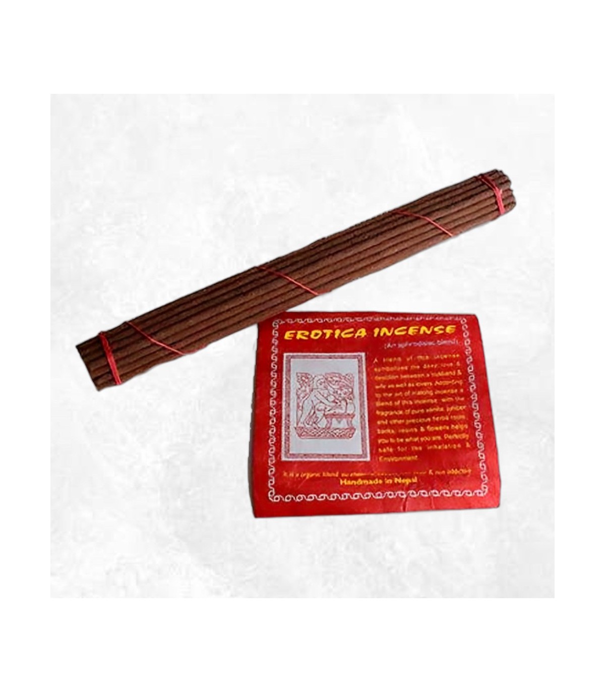 Fabriqué artisanalement au Népal, l’encens tibétain Érotique est conçu pour éveiller les sens subtils, favoriser la connexion émotionnelle et créer une atmosphère chaleureuse et enveloppante. Il accompagne les rituels de détente, les moments d’intimité ou les séances de relaxation profonde, en diffusant un parfum doux, stimulant et naturellement équilibré.