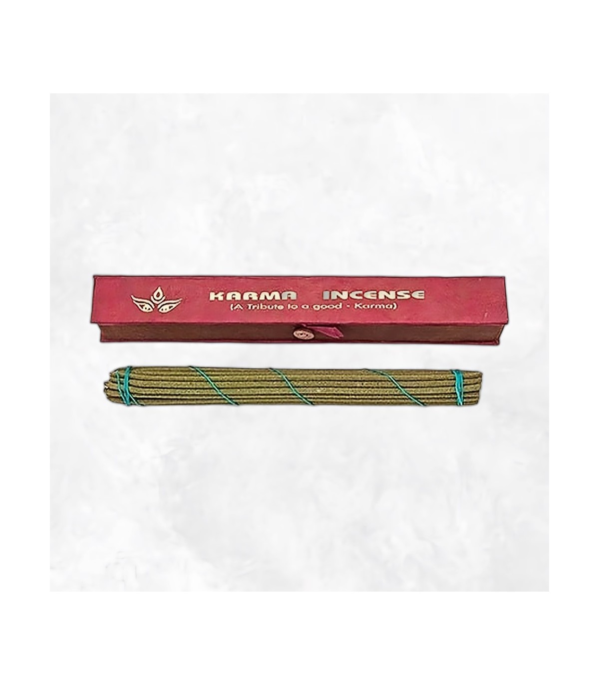 Fabriqué artisanalement au Népal, l’encens Karma incarne l’équilibre entre pureté naturelle et puissance spirituelle. Composé de 56 plantes médicinales de haute qualité, dont du sel de l’Himalaya, il est reconnu pour ses effets bénéfiques sur la stabilité mentale, la vitalité physique et l’harmonie intérieure.