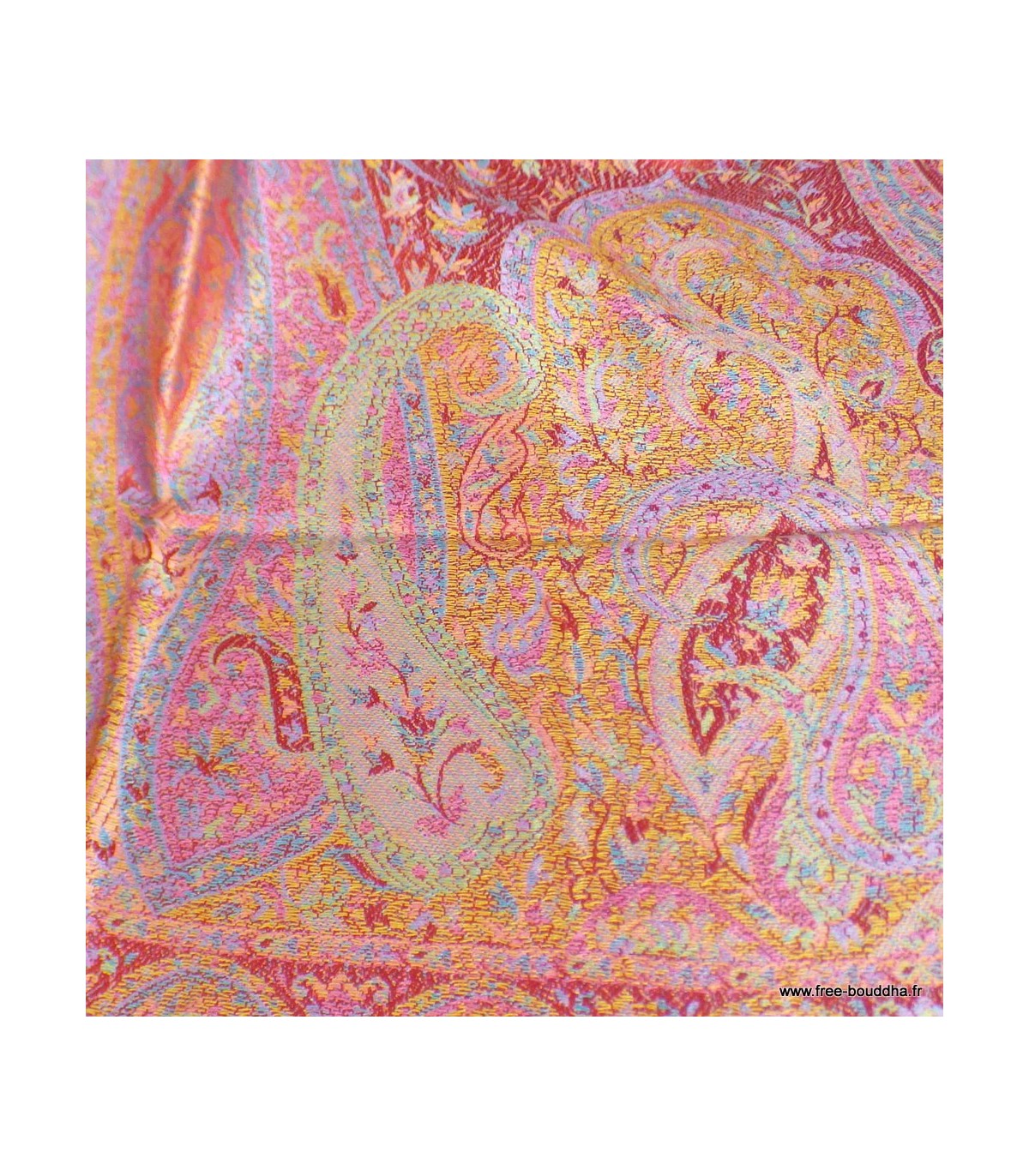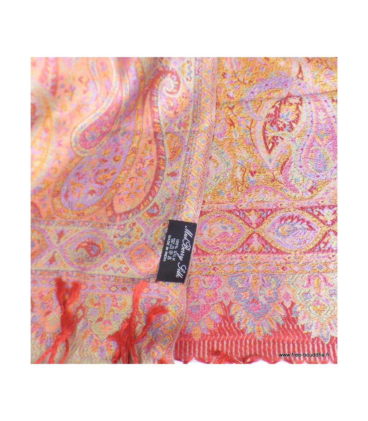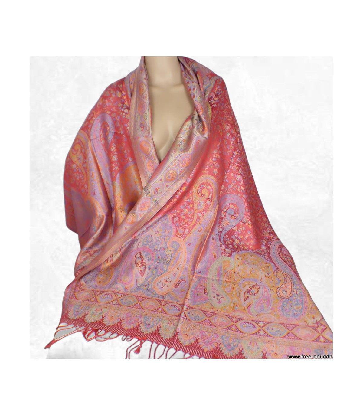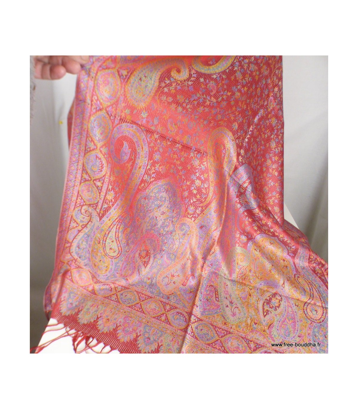 Étole en soie naturelle rouge multicolore – Élégance vibrante et motifs cachemire