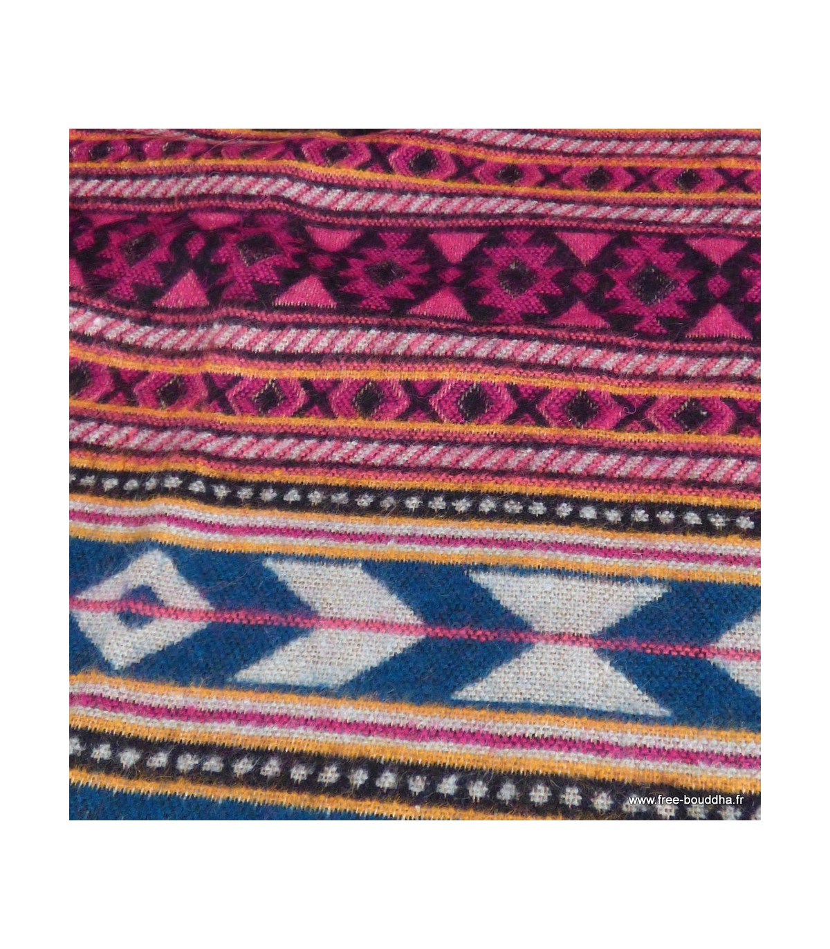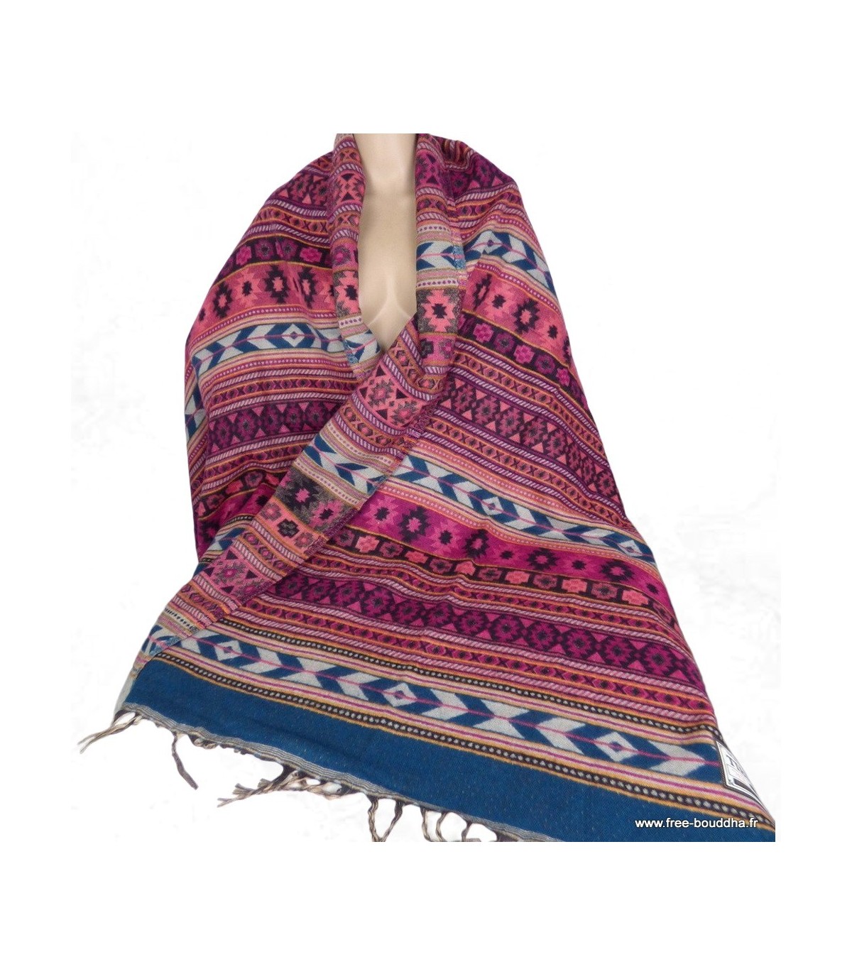 Grand châle de méditation 92 × 210 cm fuchsia bleu – Fabrication artisanale du Népal