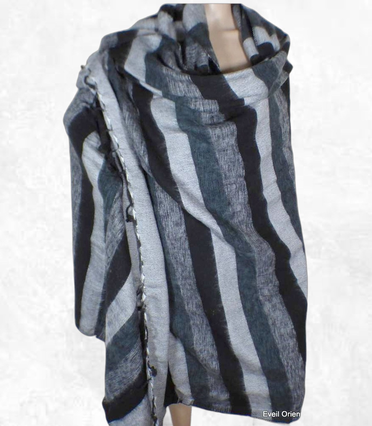 Grand châle de méditation gris noir 240 x 120 cm – Laine de yack