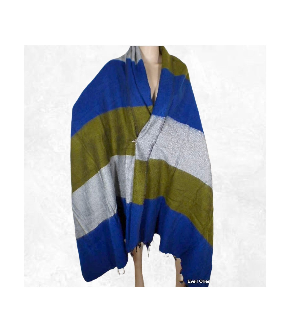 Grand châle népalais bleu kaki 240 x 120 cm – Laine de yack