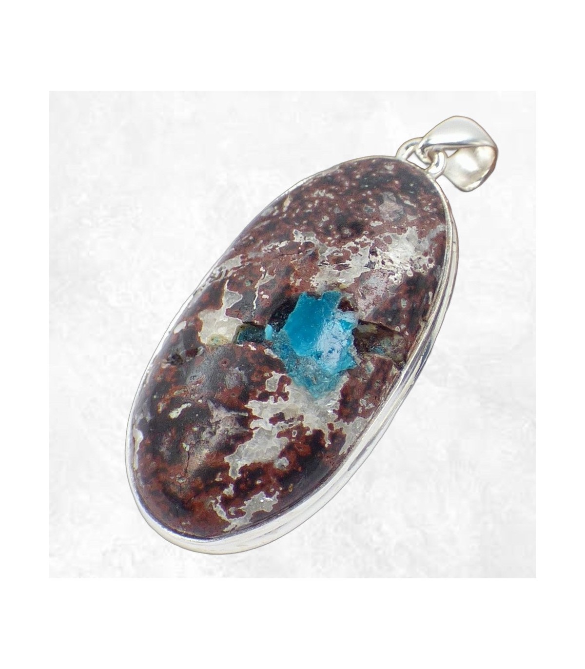 Gros Pendentif en Cristal de Cavansite en argent 925
