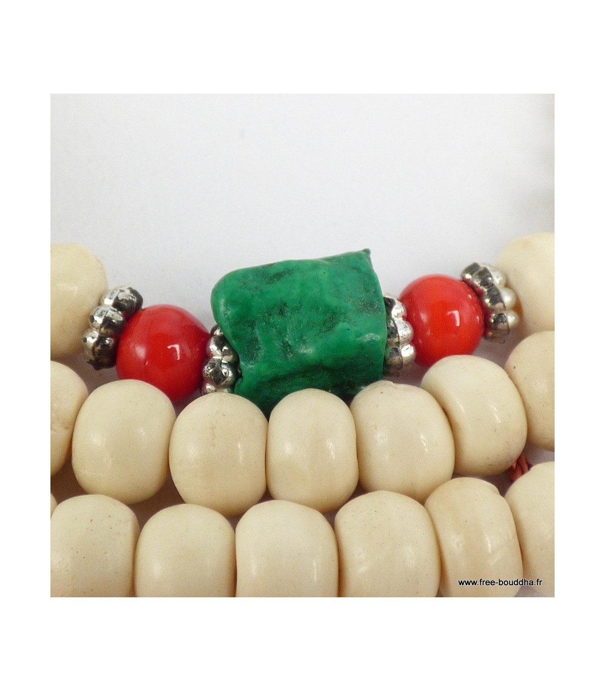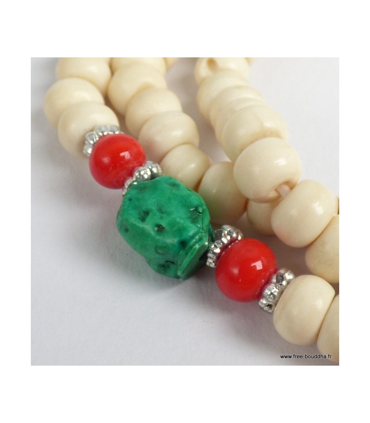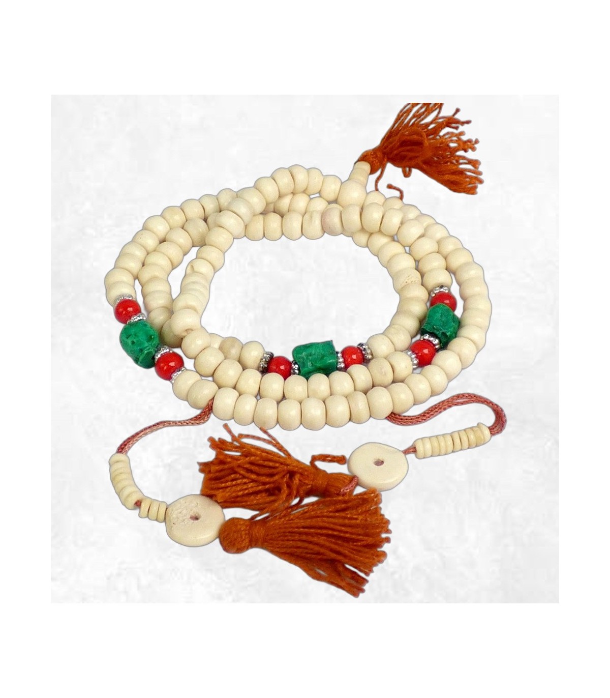Mala tibétain en Os de Buffle Blanc avec Compteurs – Protection et sagesse intérieure