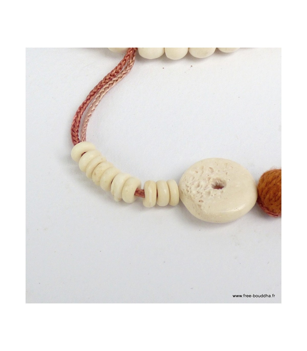 - 108 perles en os de buffle blanc naturel et pierres fantaisie