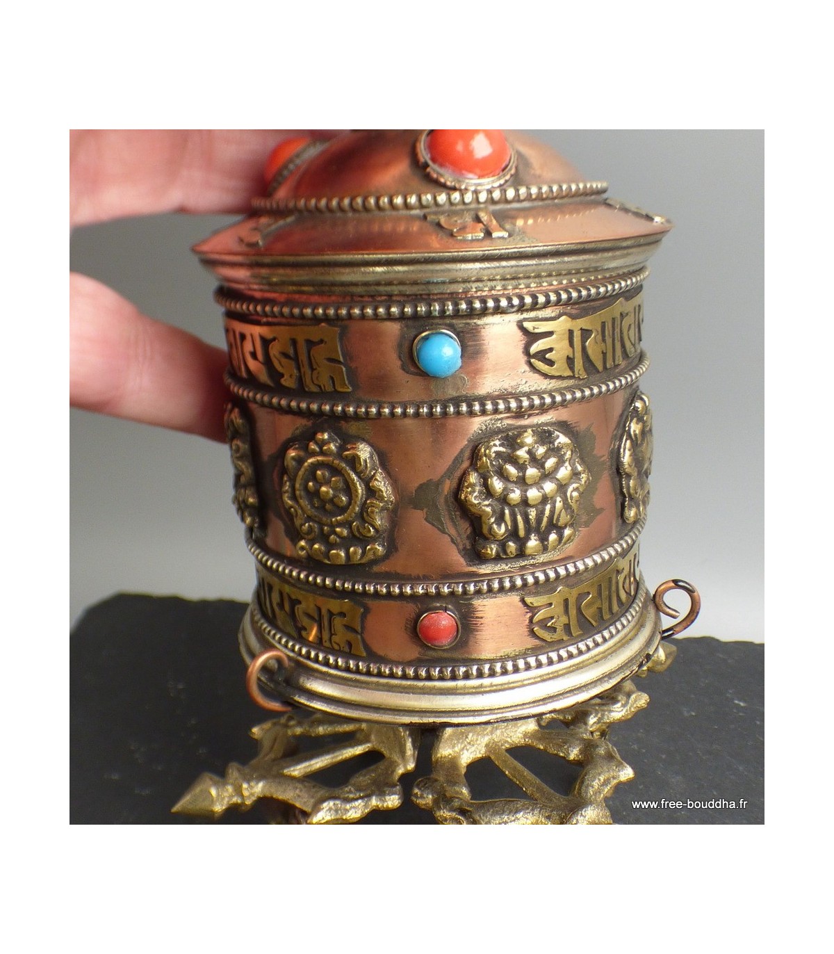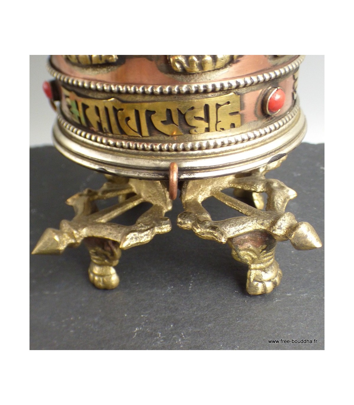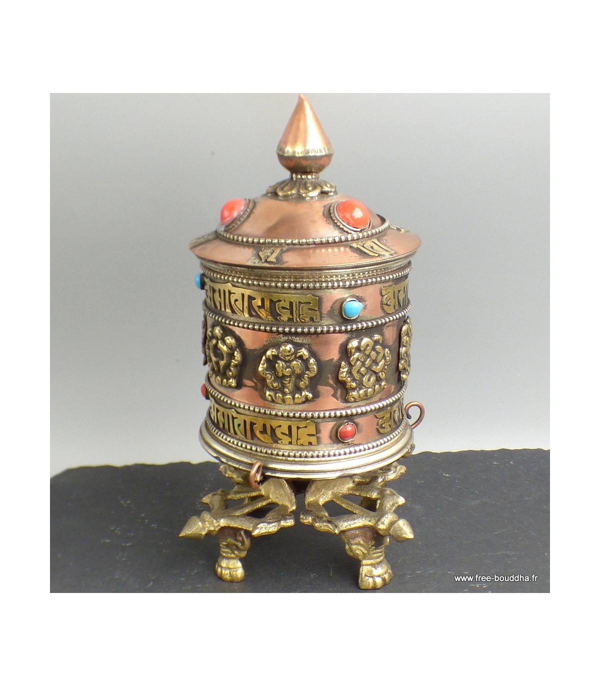Moulin à prières bouddhiste 4 pieds Métal et laiton
