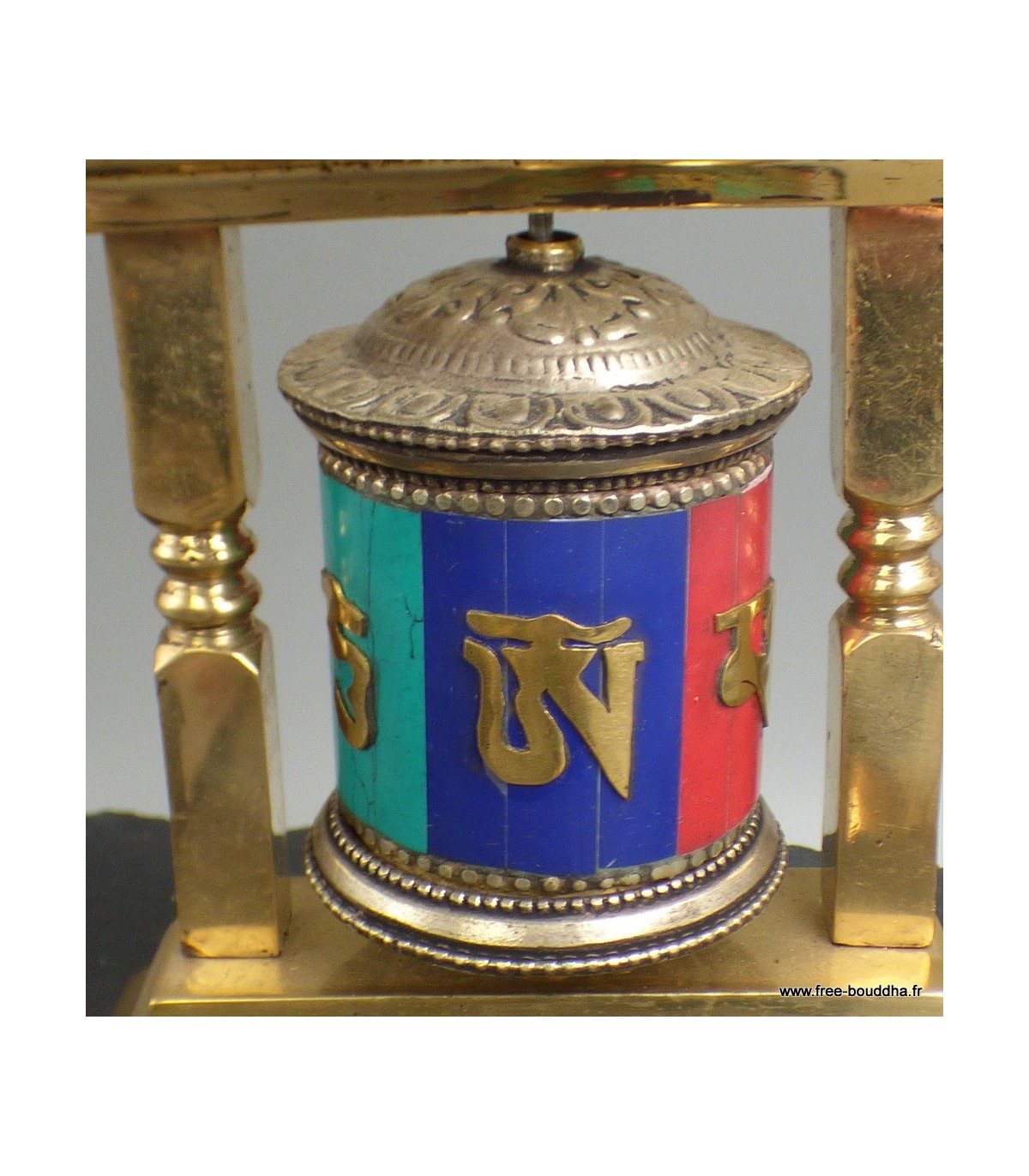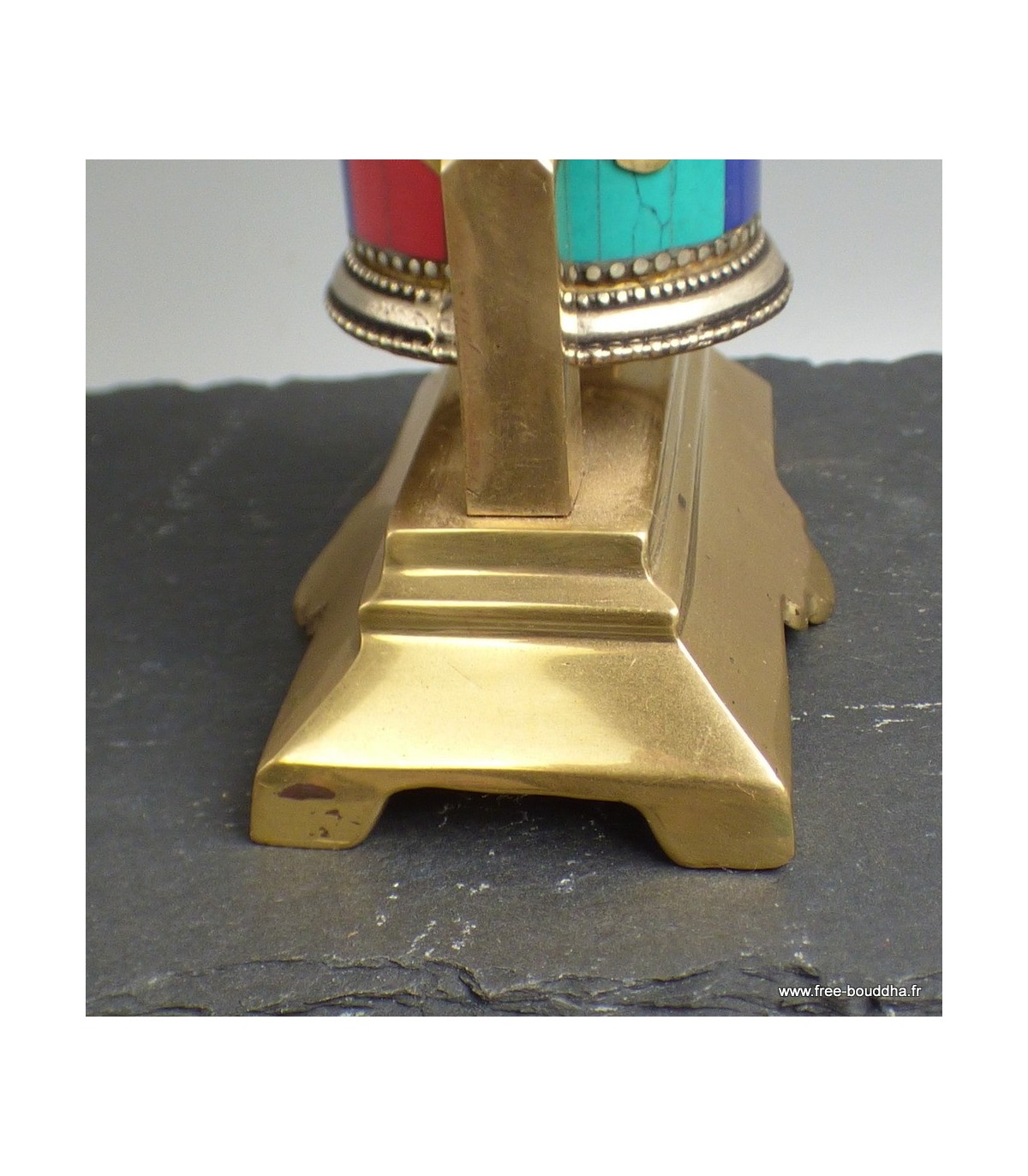 Moulin à prières bouddhiste laiton et pierres