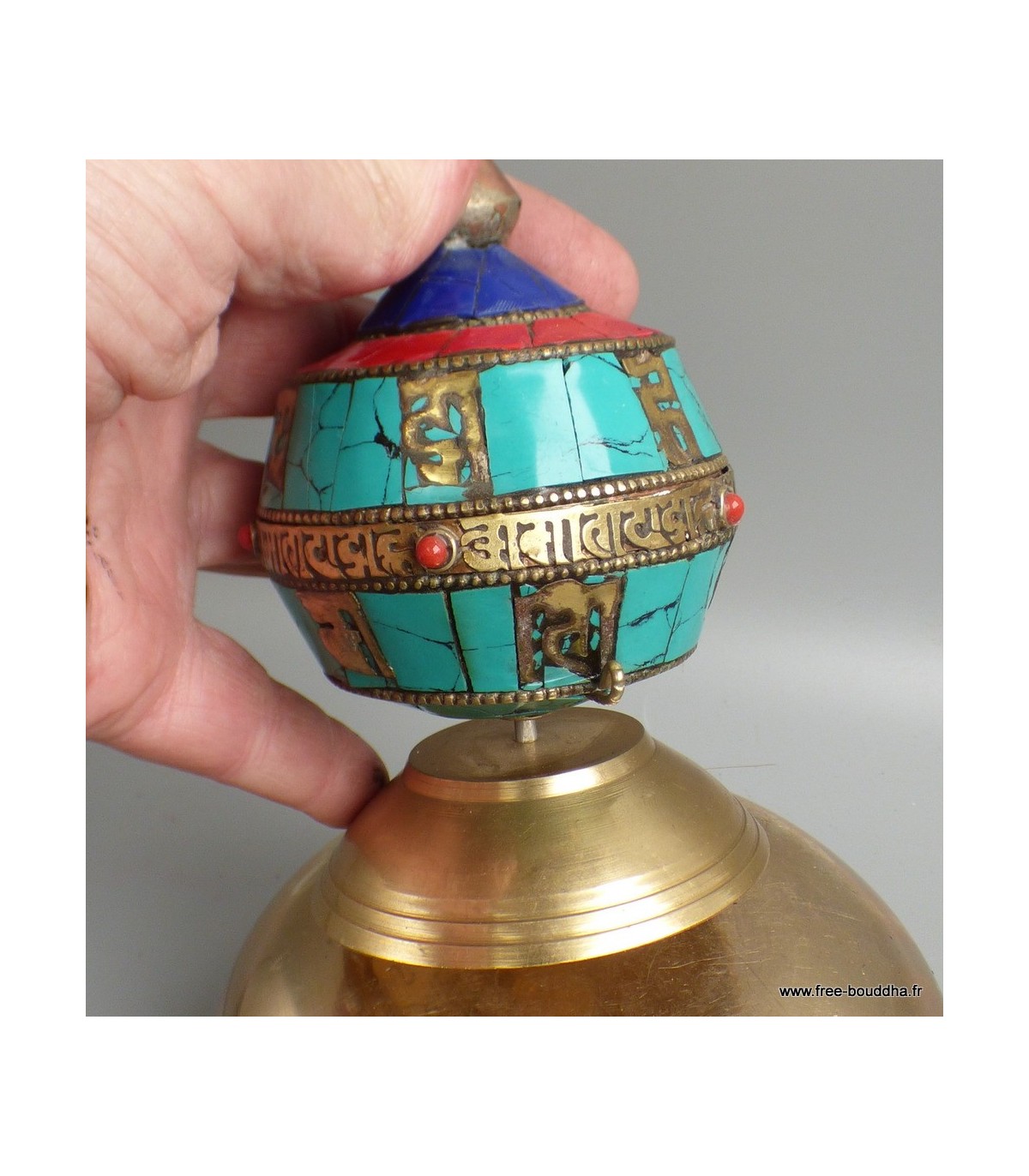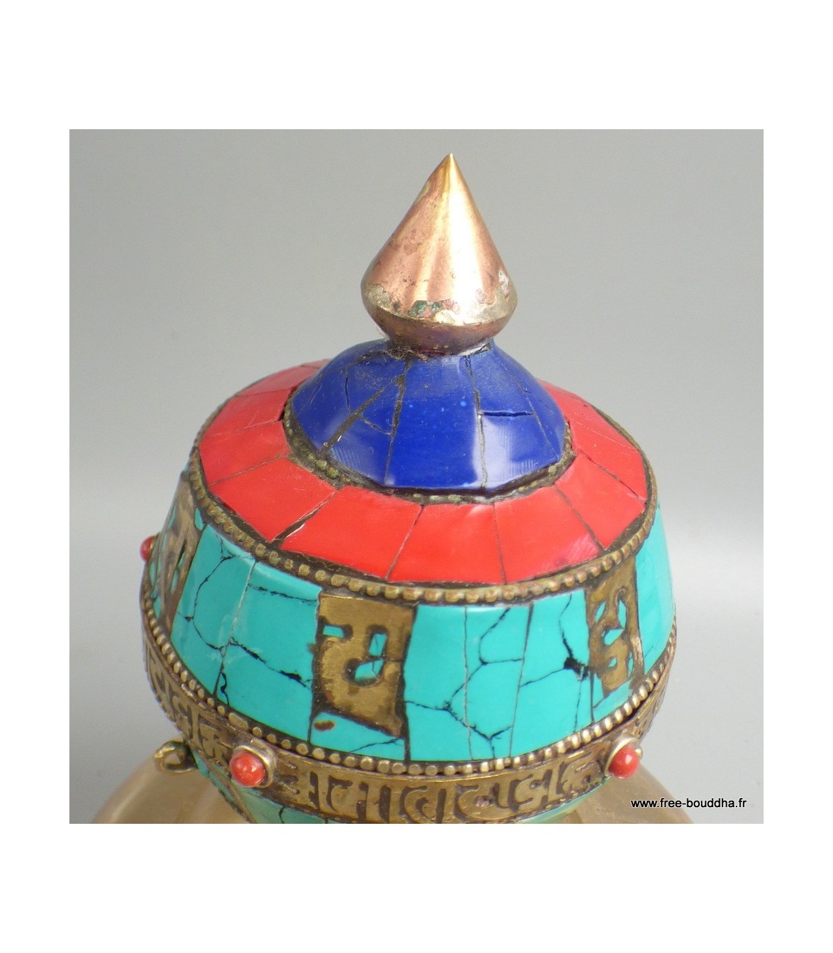 - Contenu : tambour rempli de prières tibétaines