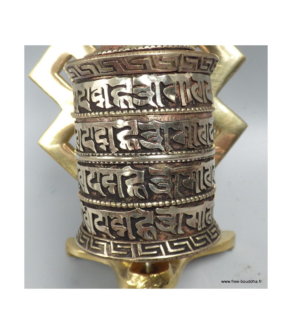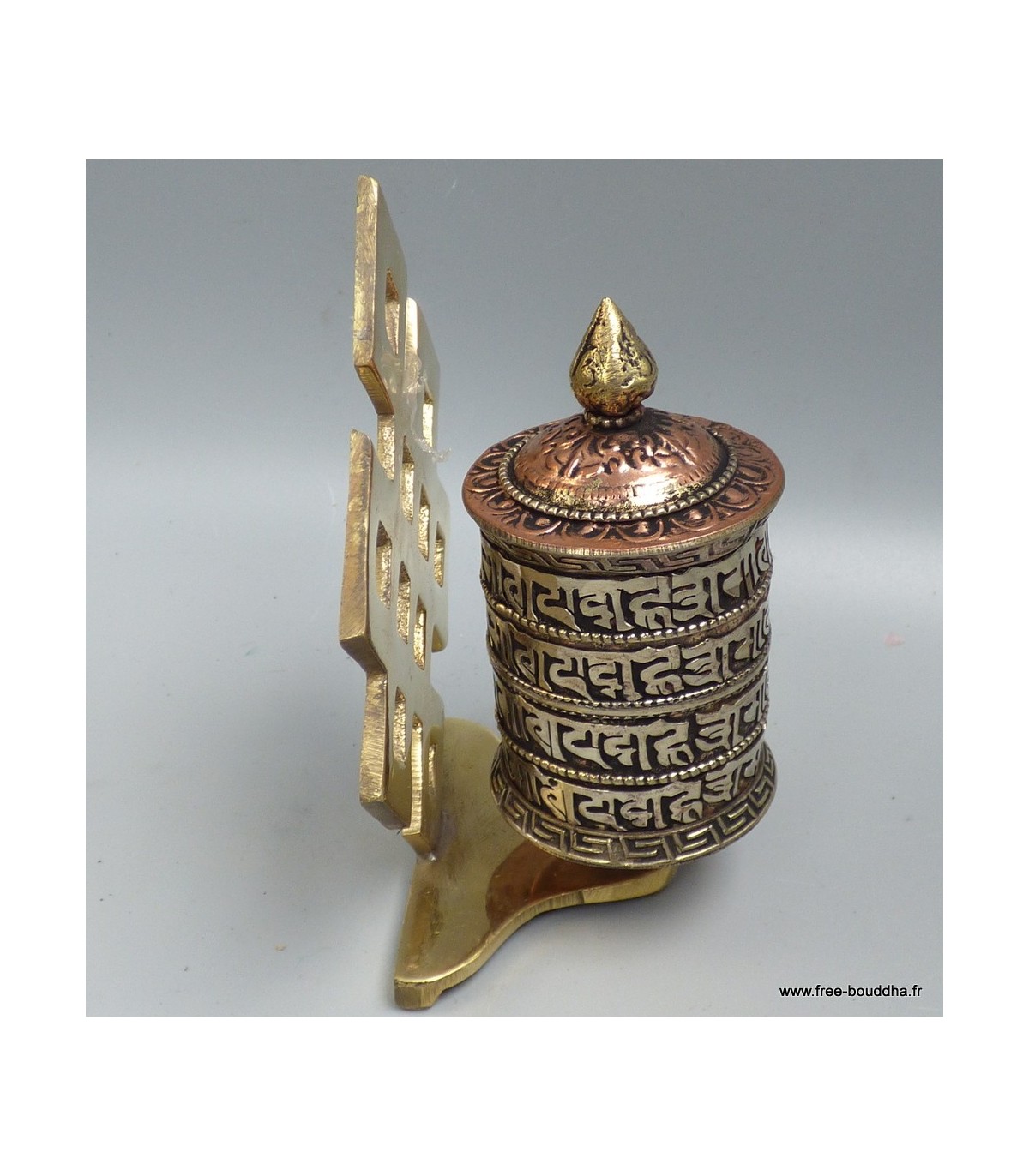Moulin à prières tibétain en laiton – Mantras Om Mani Padme Hum – 11,5 cm