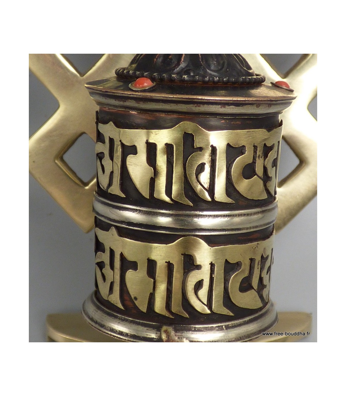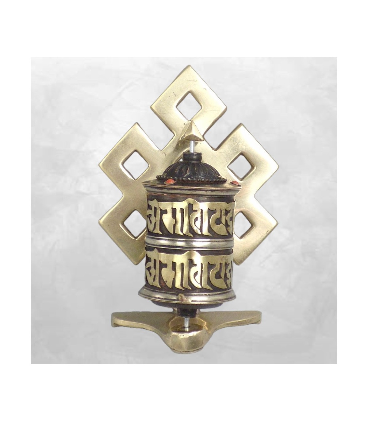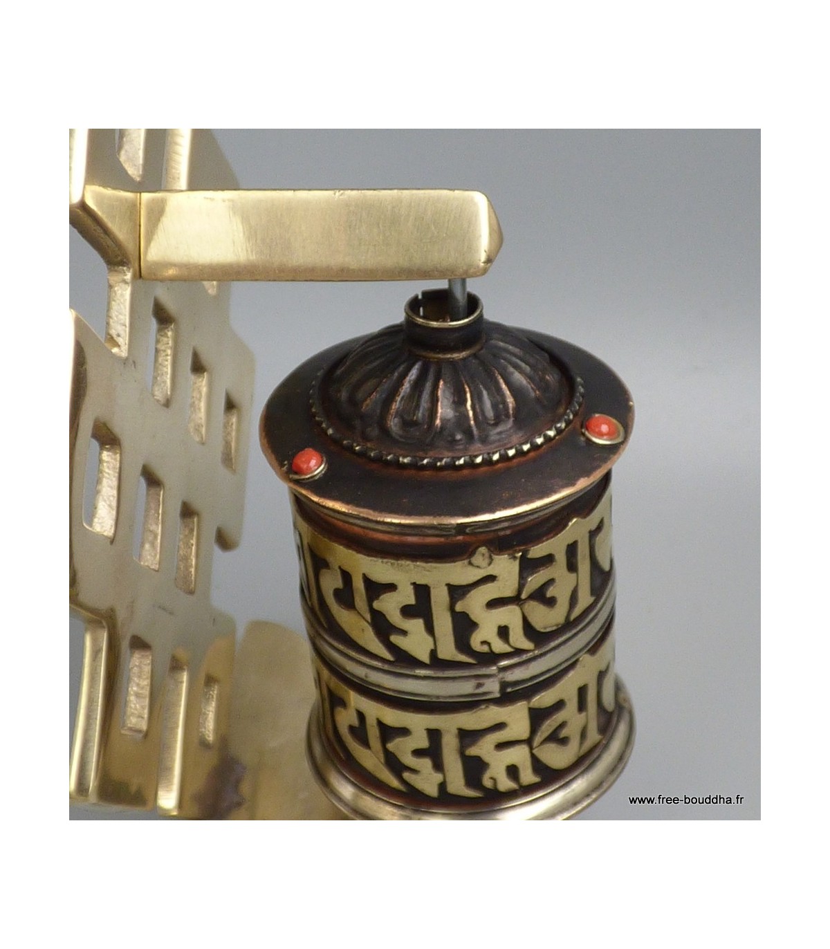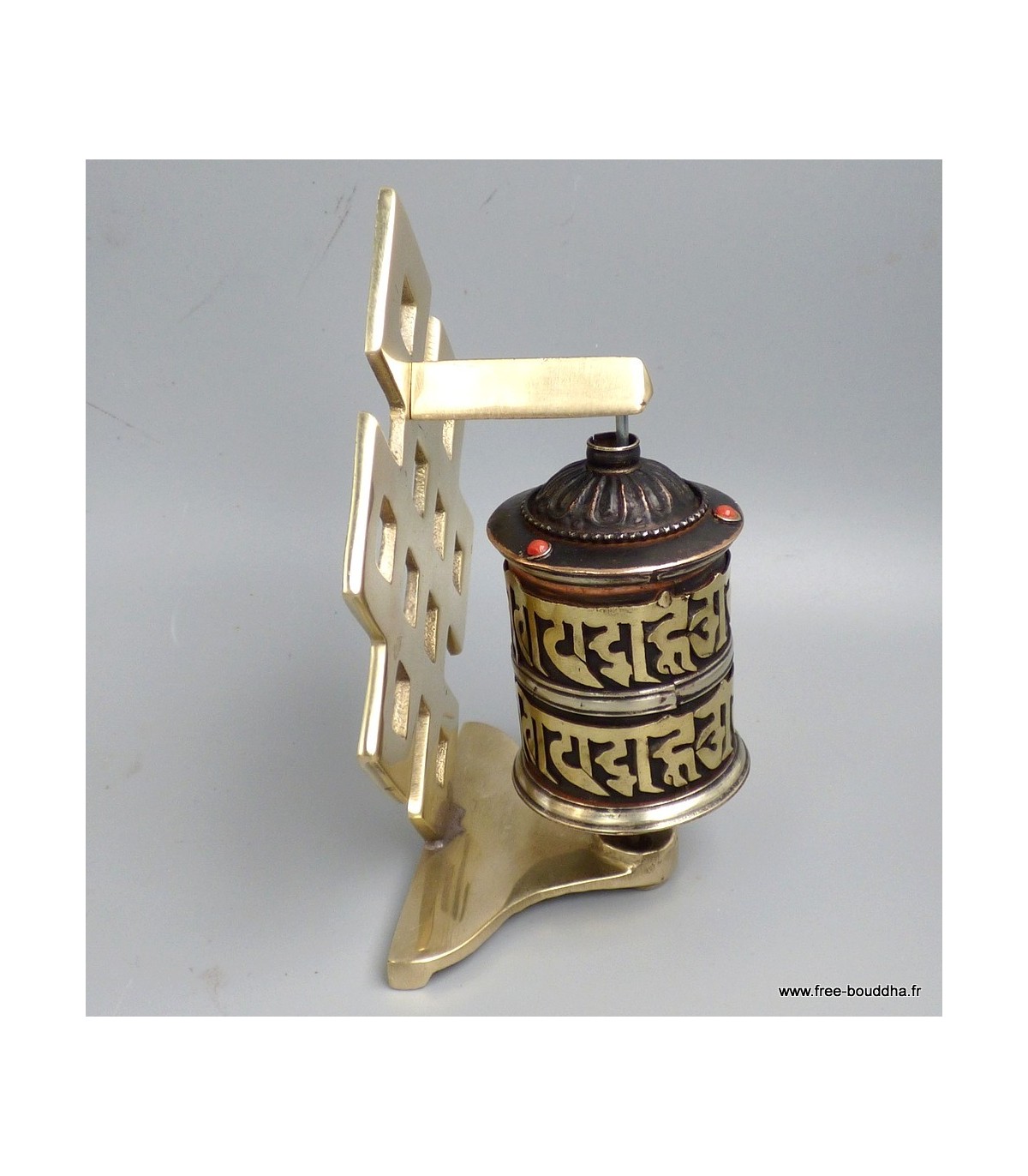 Moulin tibétain laiton et cuivre vieilli 2 mantras de Chenrezi