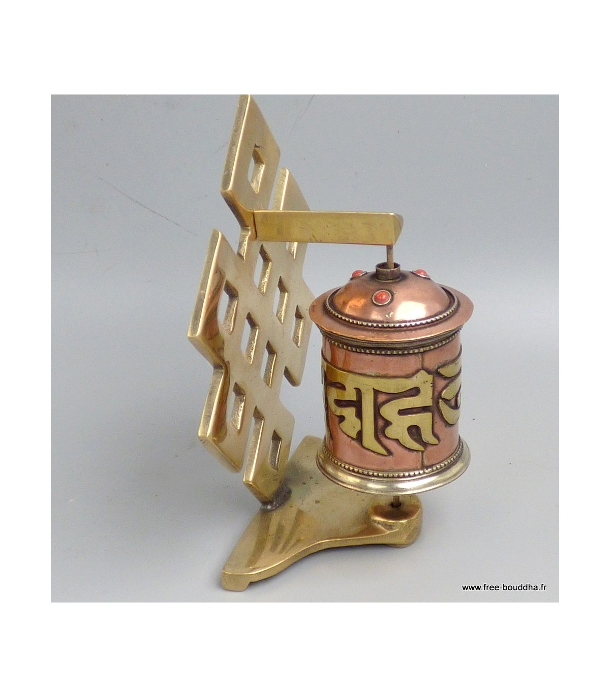 Moulin tibétain mural laiton et cuivre mantra de Chenrezi