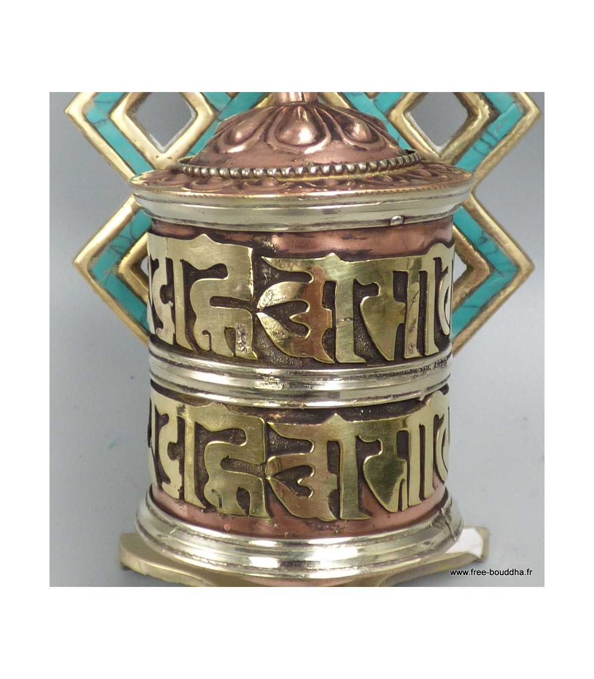 Moulin tibétain mural turquoise et 2 mantras